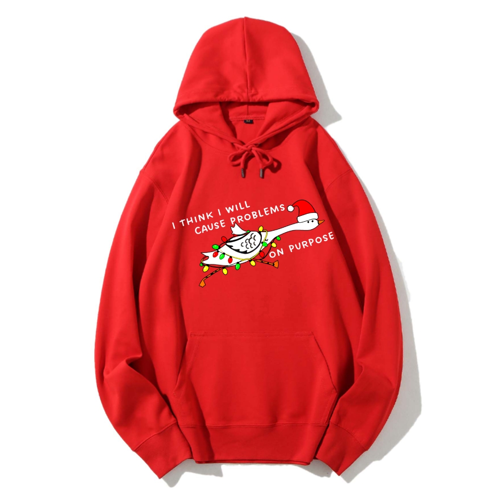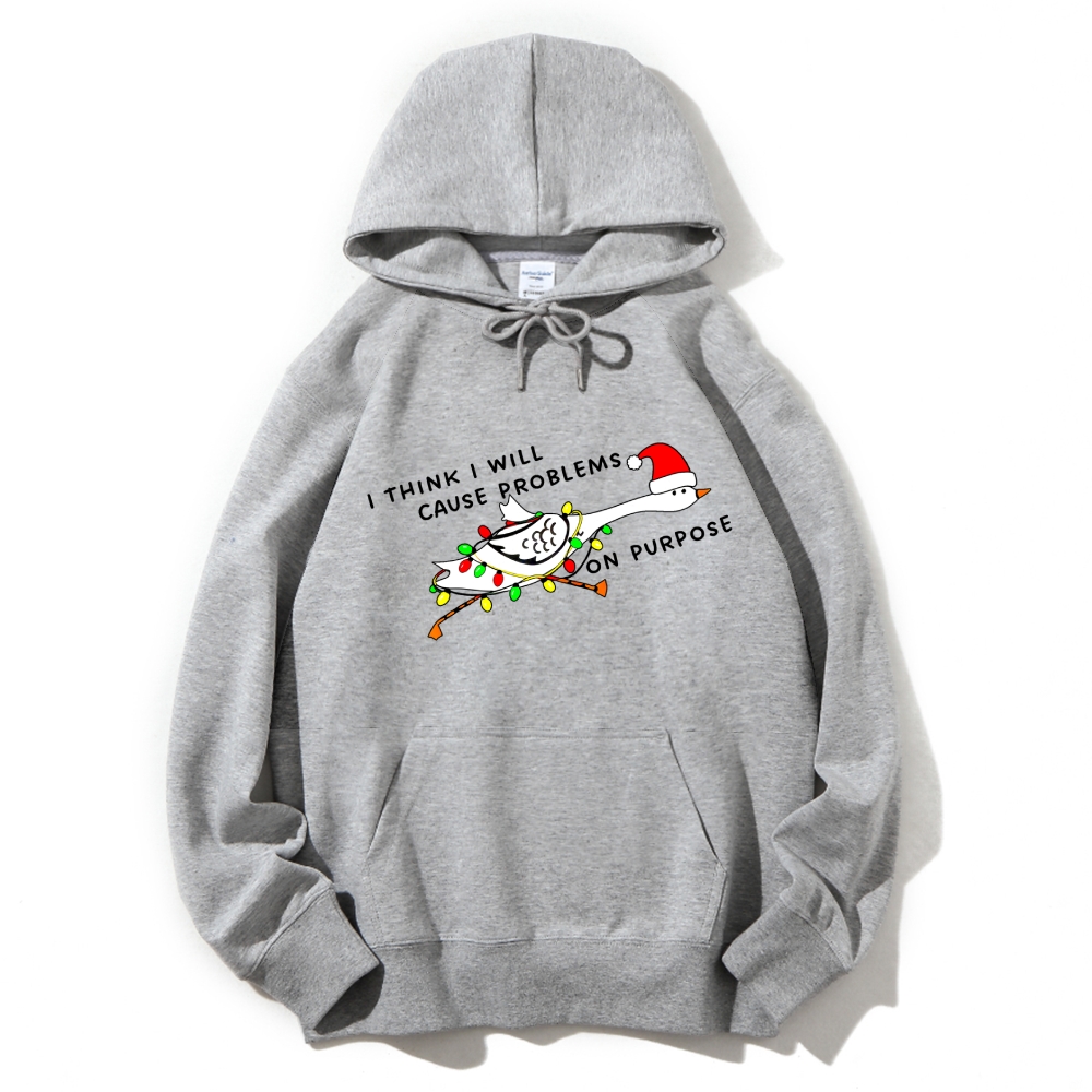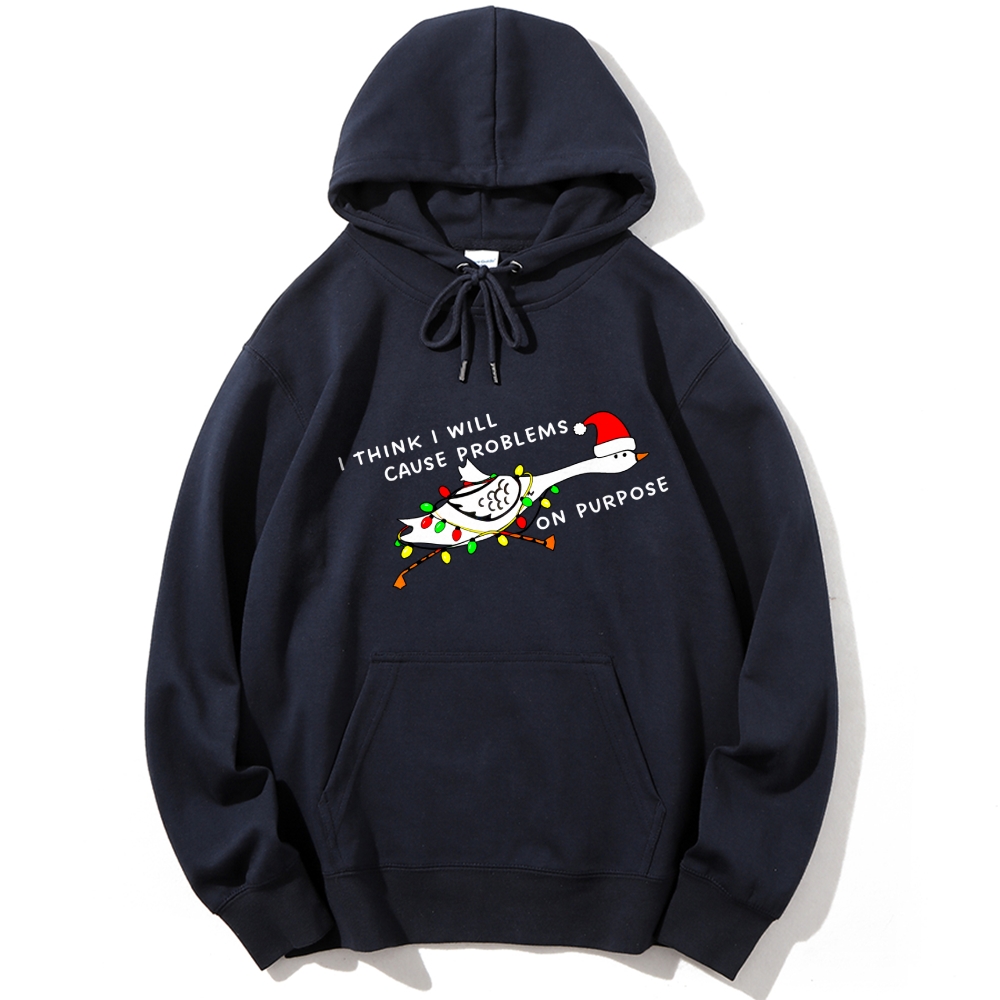 I Think I Will Cause Problems On Purpose. (Christmas Goose) Cotton Hoodie