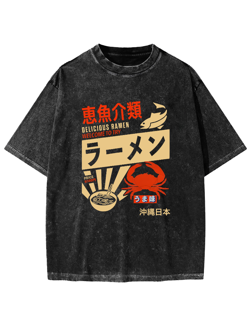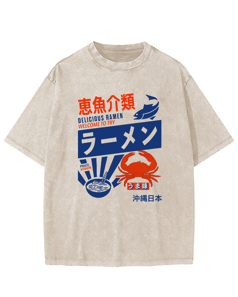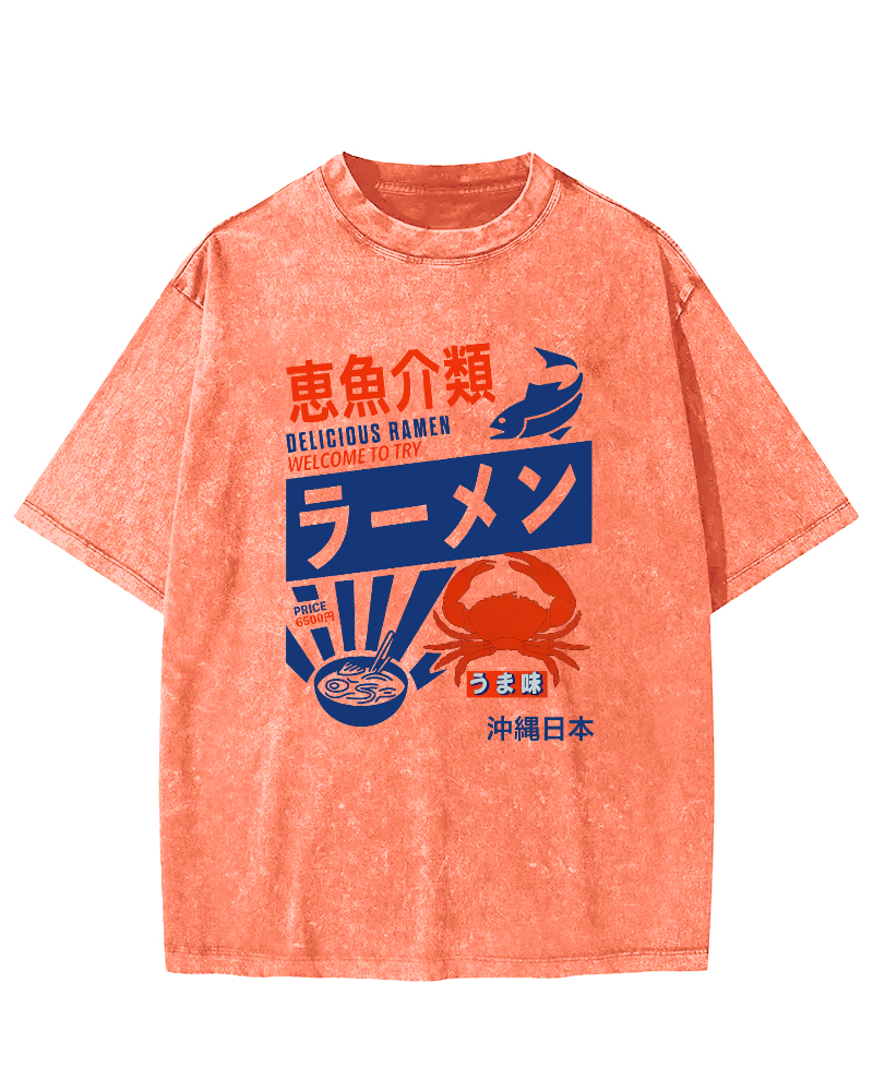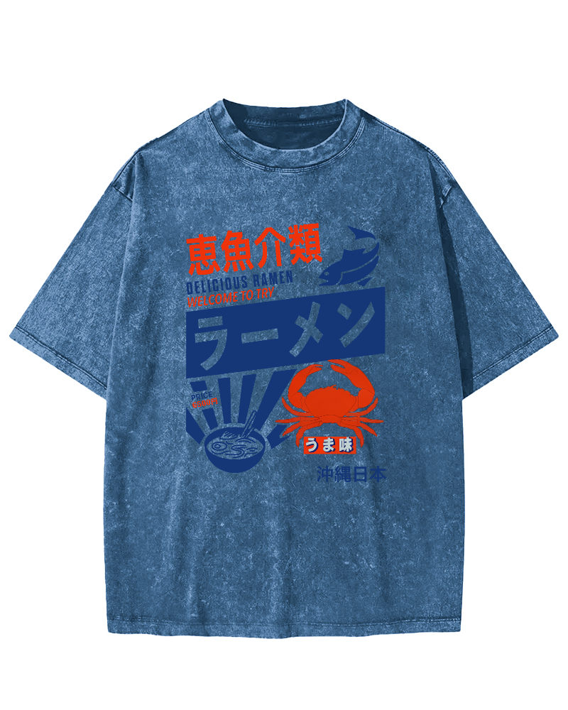 Japanese Lamian Noodles Food Retro Vintage Washed T-shirt