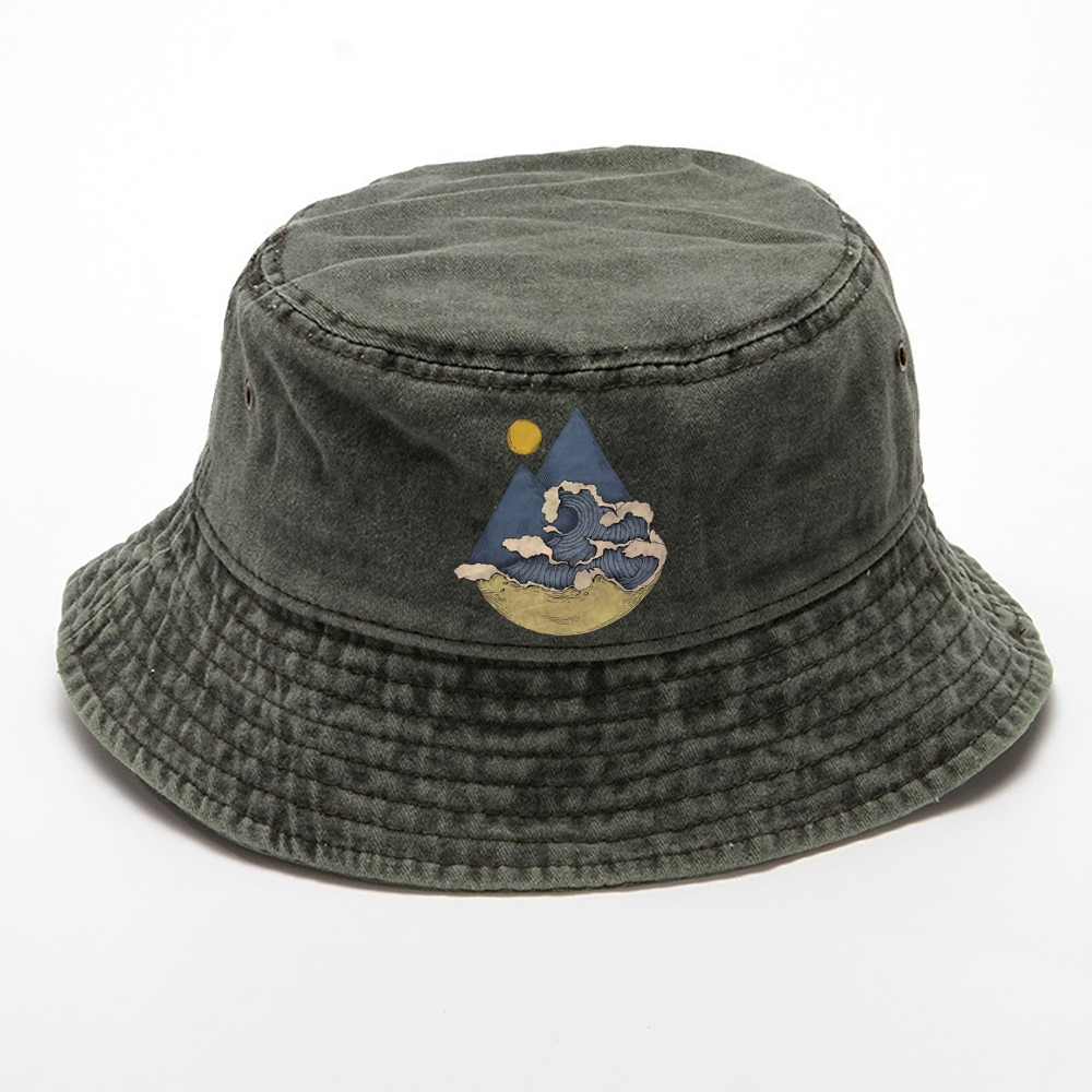 Japanese traditional pattern Mountains And Waves Simple Retro Bucket Hat
