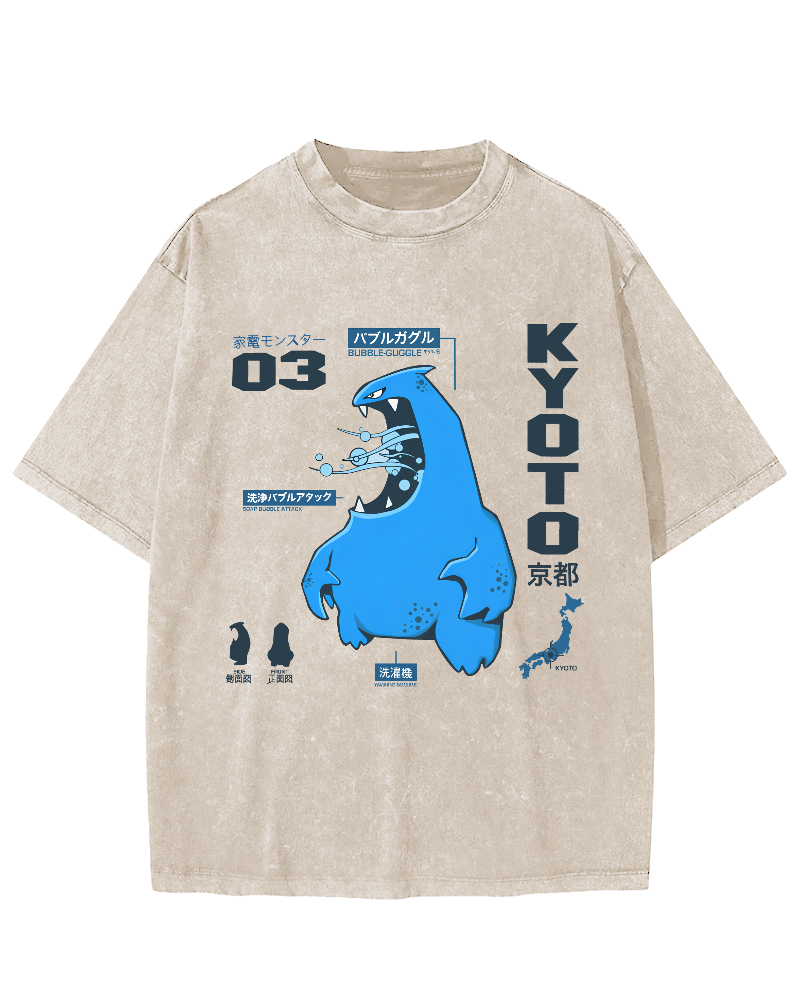 Kyoto Cartoon Style Vintage Washed T-shirt