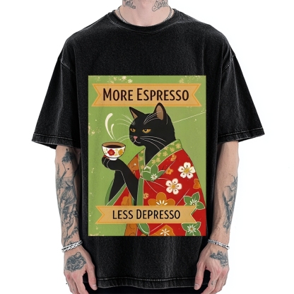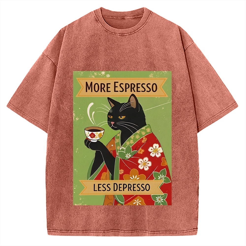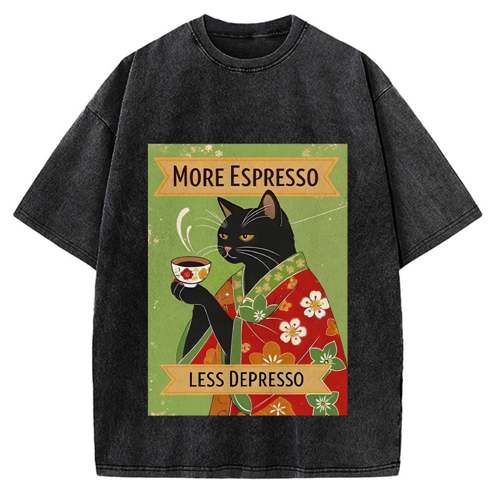 More Espresso Less Depresso Kimono Cat Vintage Washed T-shirt
