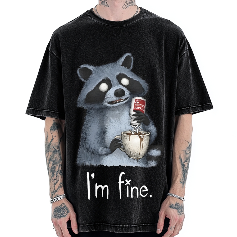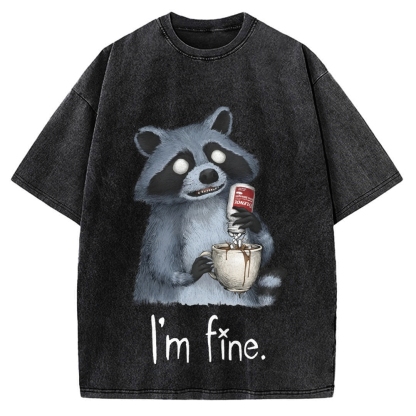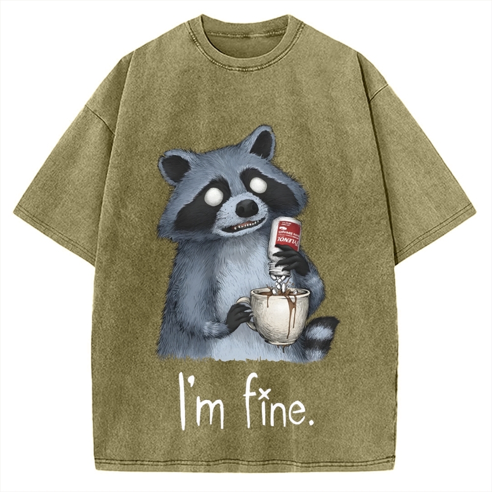 Raccoon Is Fine Funny Vintage Washed T-shirt