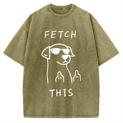 Rebellious Dog Fetch This Rude Dog Funny Humor Vintage Washed T-shirt