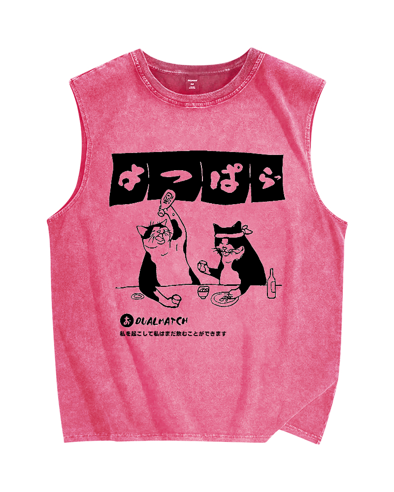 Wake me up I can still drink Cat Izakaya Vintage Distressed Washed Tank Top