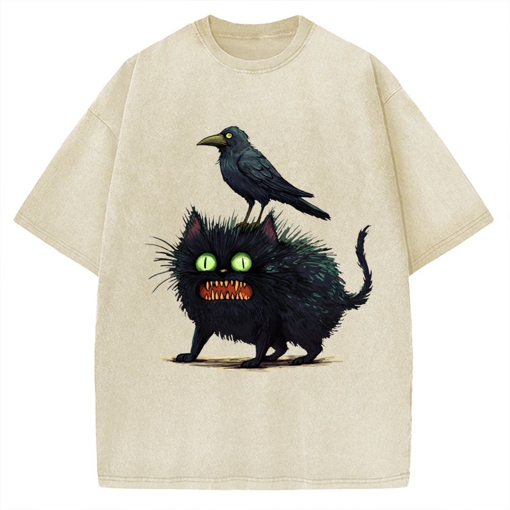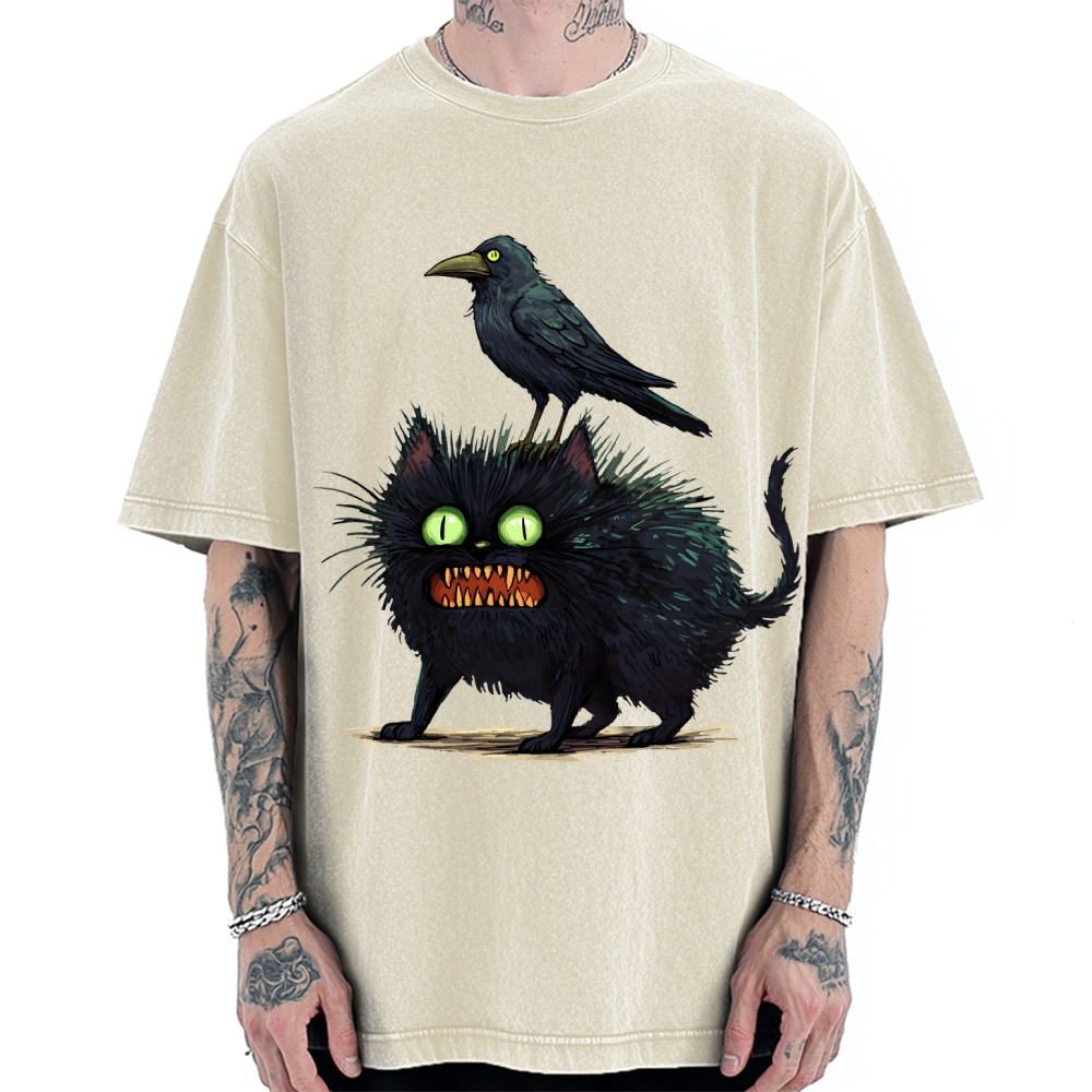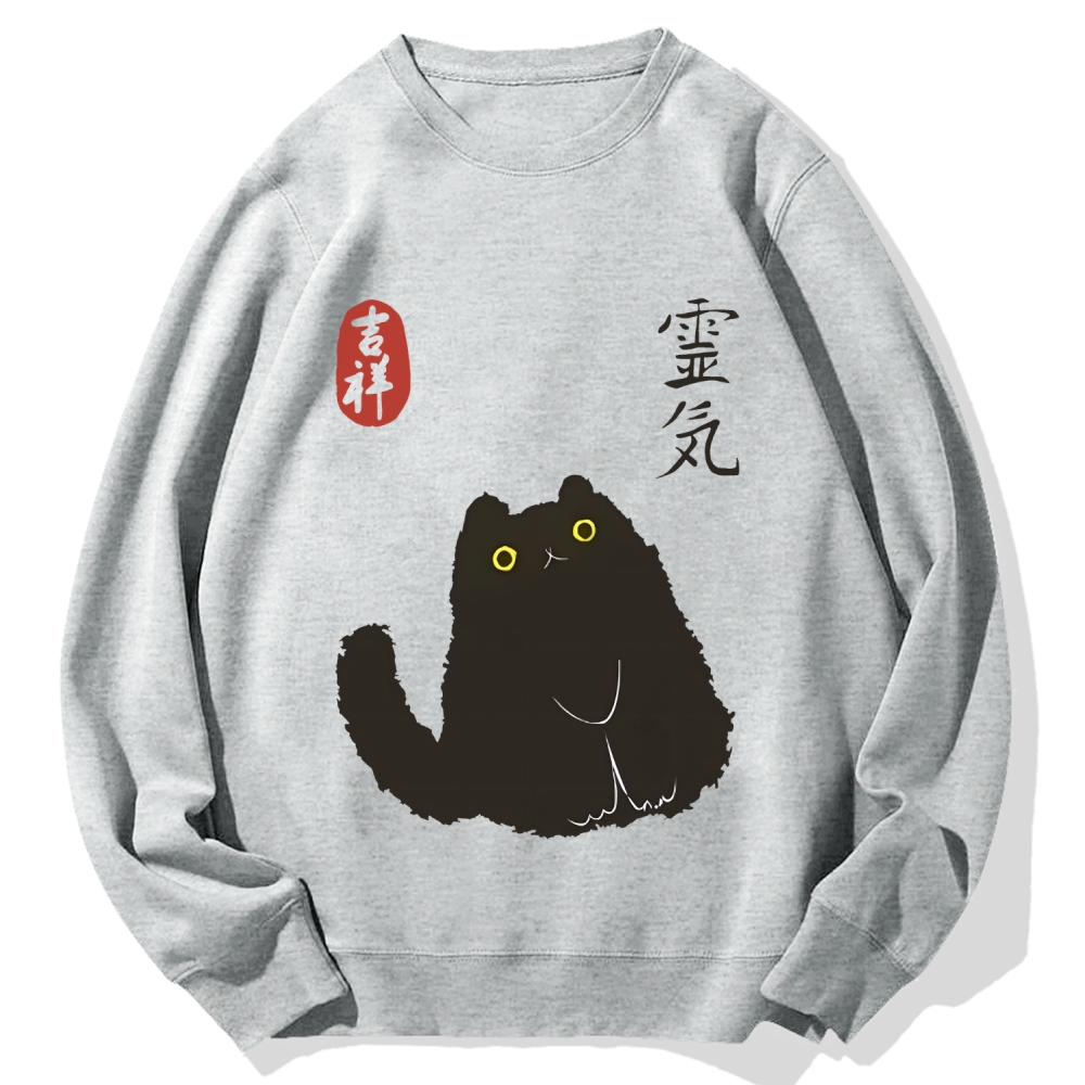 Lucky Cat Black Cat Vintage Wash Japanese Design Cotton Sweatshirt