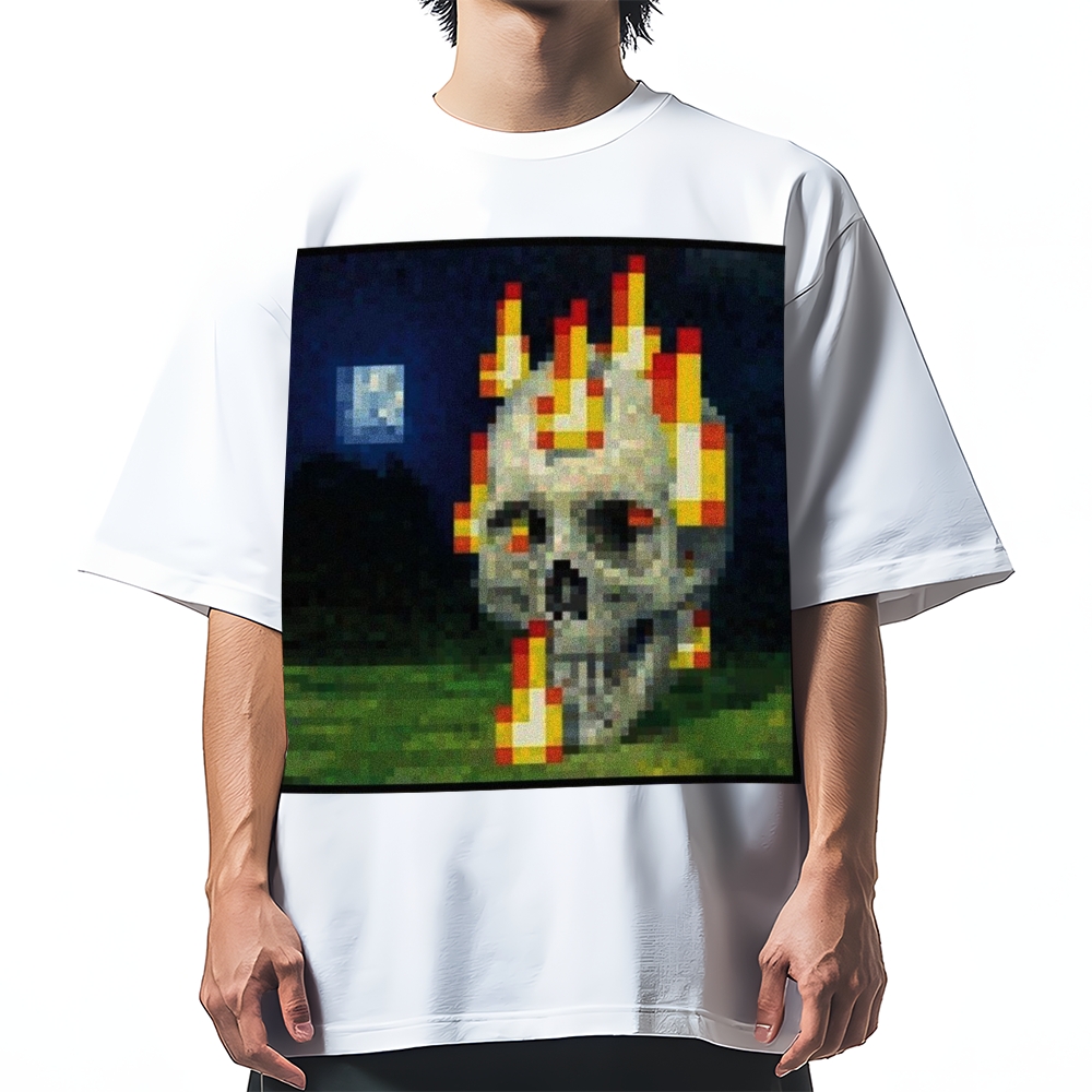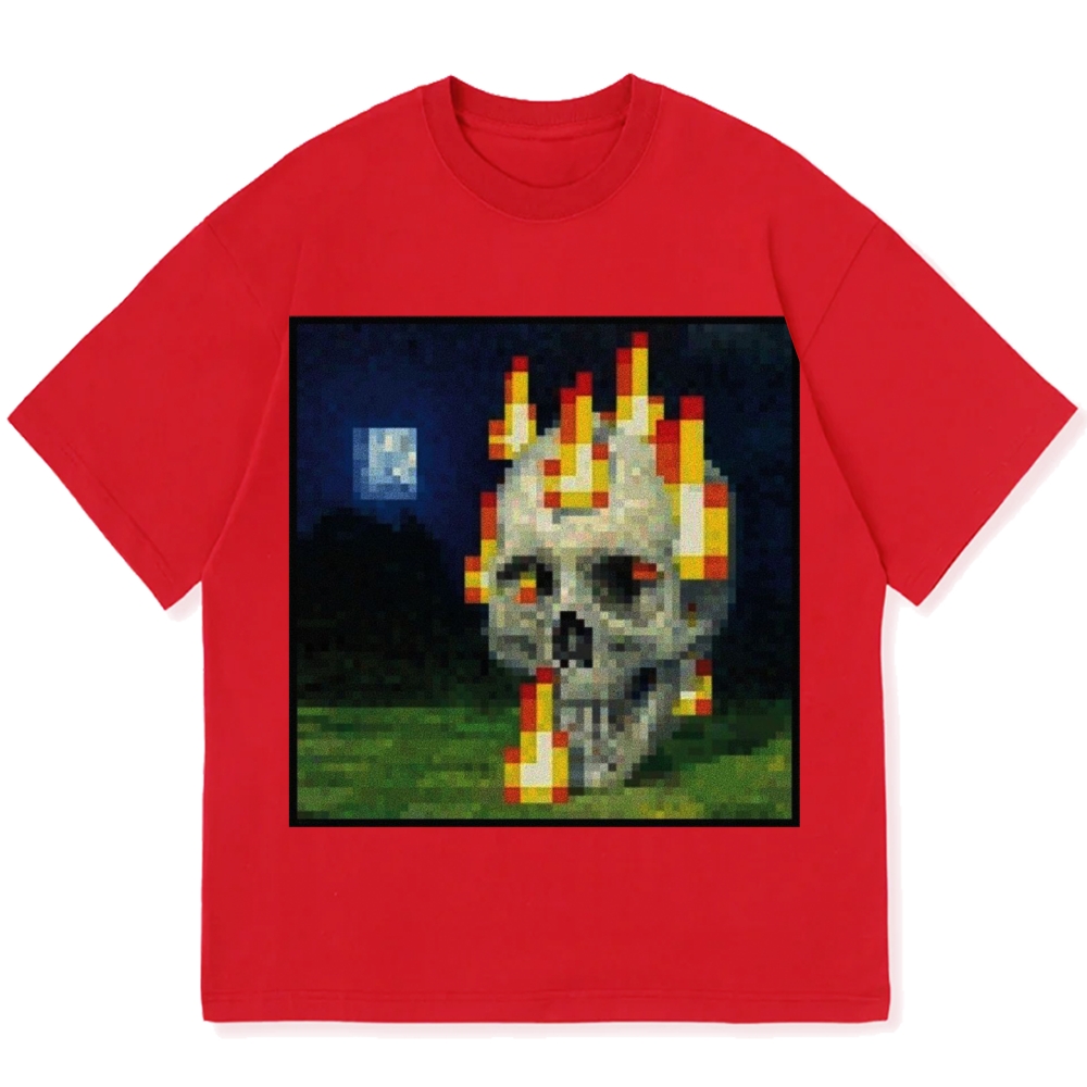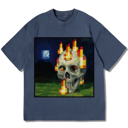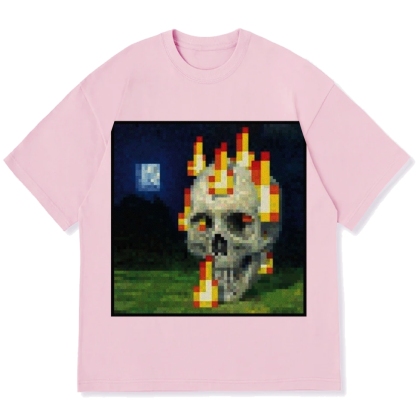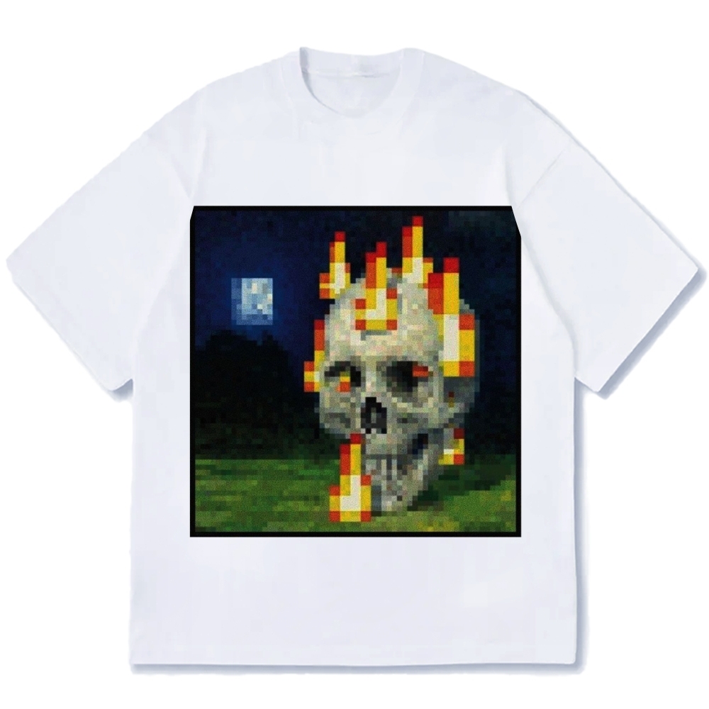 Burning Skull Mosaic Painting Cotton casual T-shirt