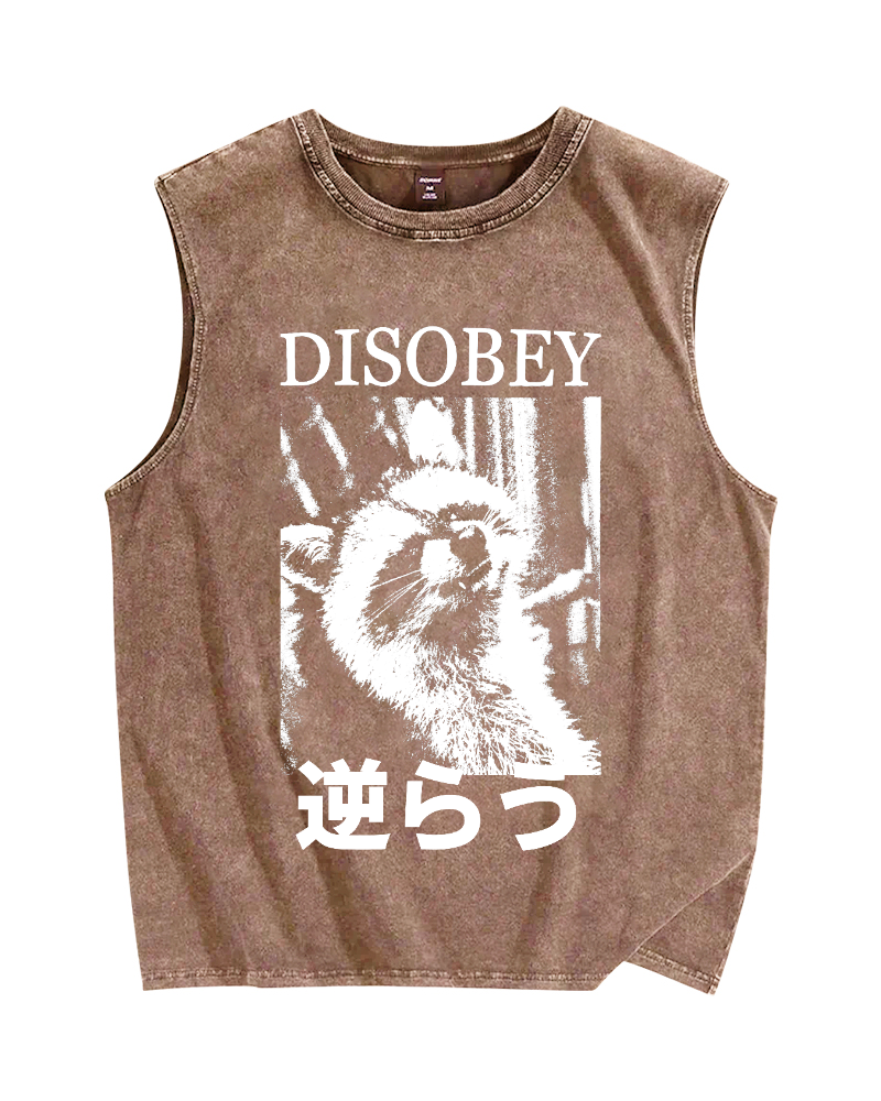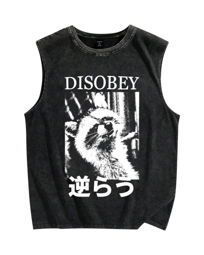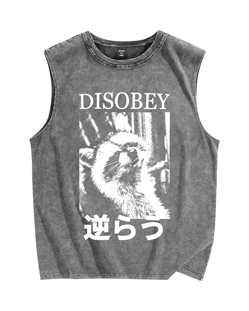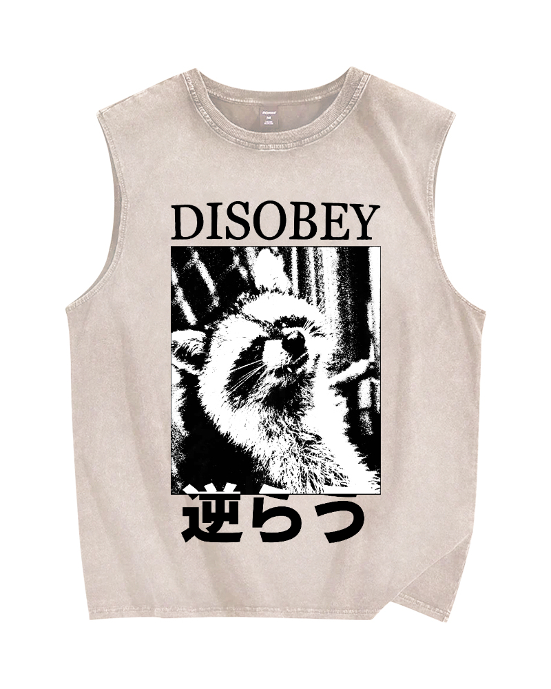 Disobey Raccoon Vintage Distressed Washed Tank Top