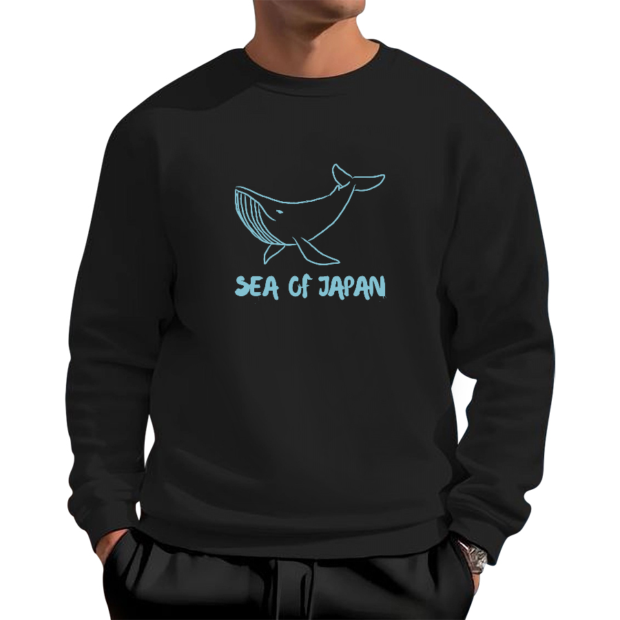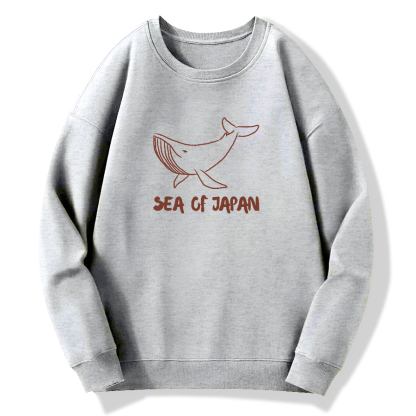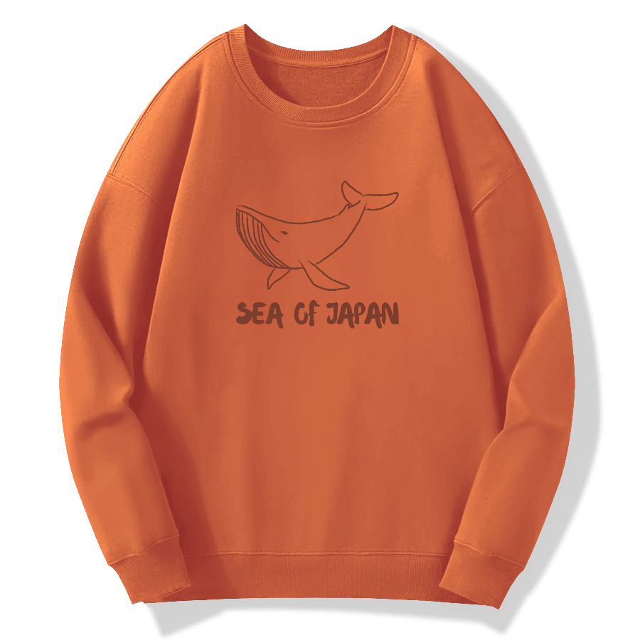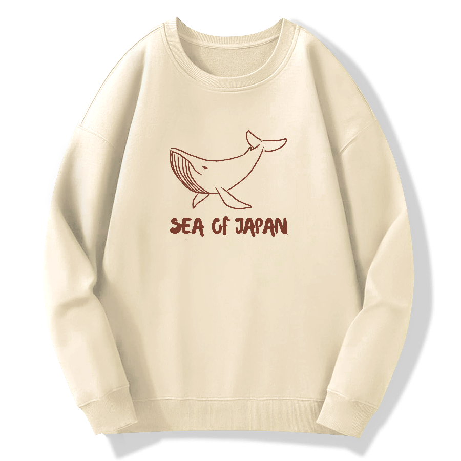Japanese Sea Whales Cotton Pullover Sweatshirt