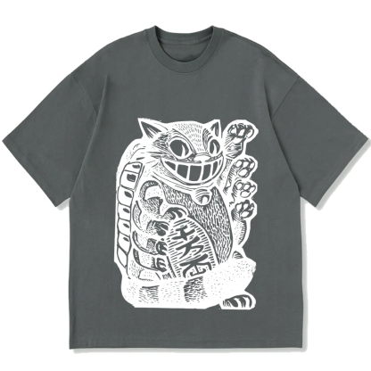 Lucky Cat Bus Japanese Anime Cotton casual T-shirt