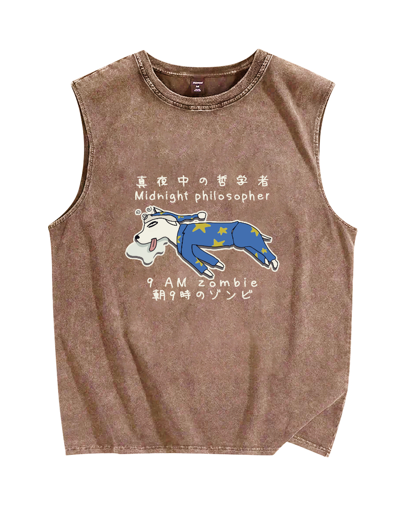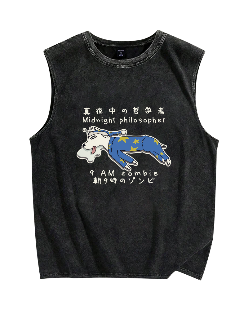 Midnight Philosopher Vintage Distressed Washed Tank Top