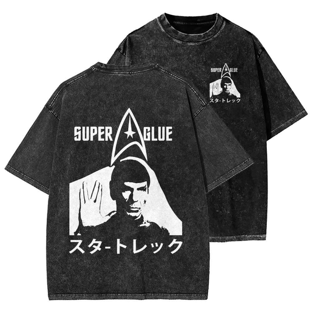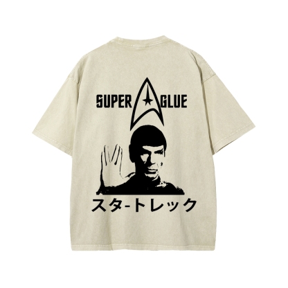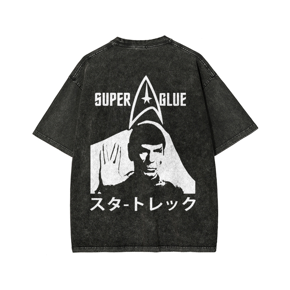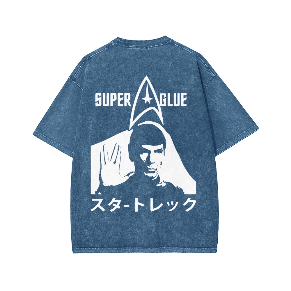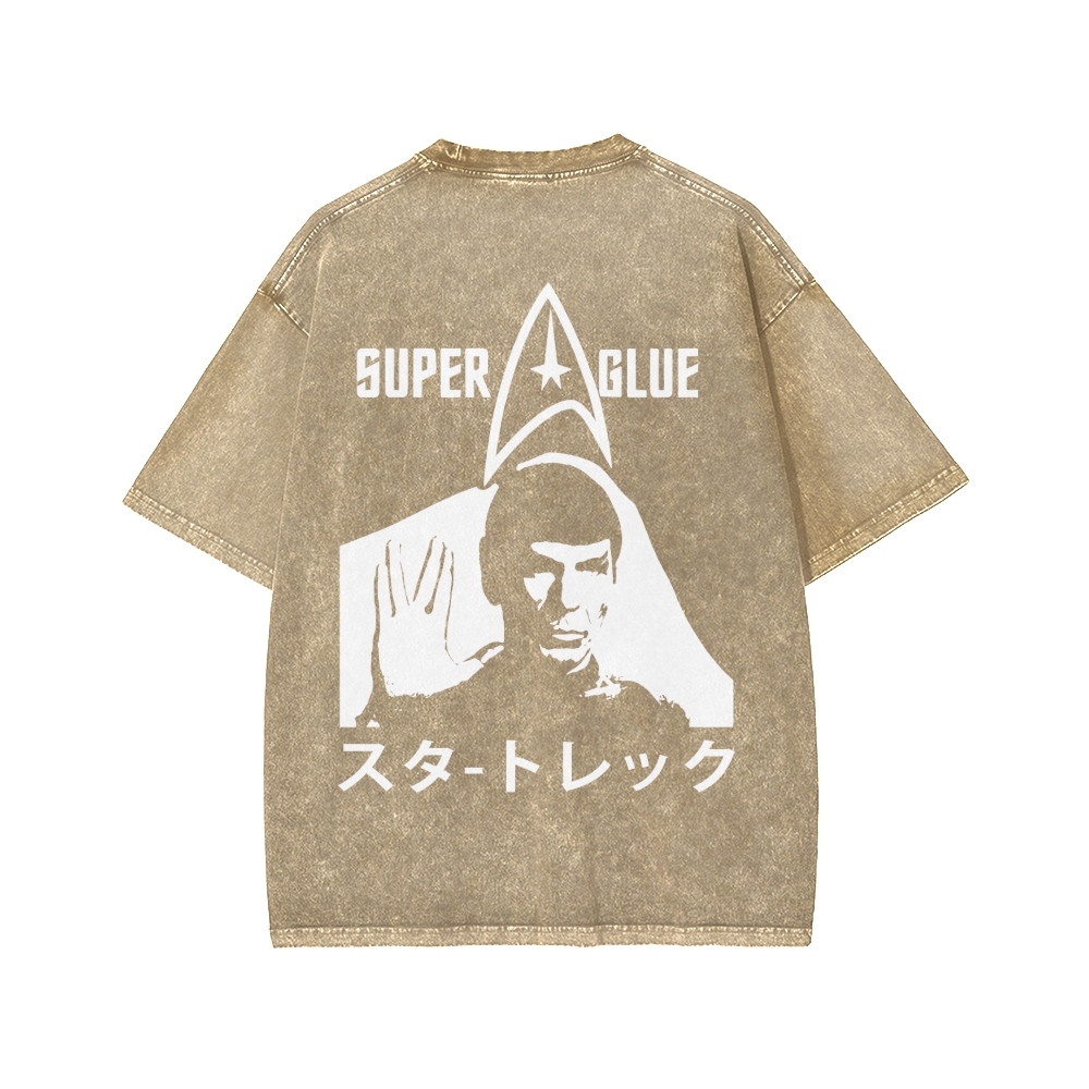 SUPER GLUE Front And Back Printing Washed T-shirt