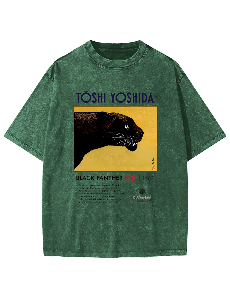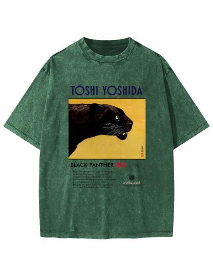 Yoshida Jun Black Panther Art Vintage Washed T-shirt