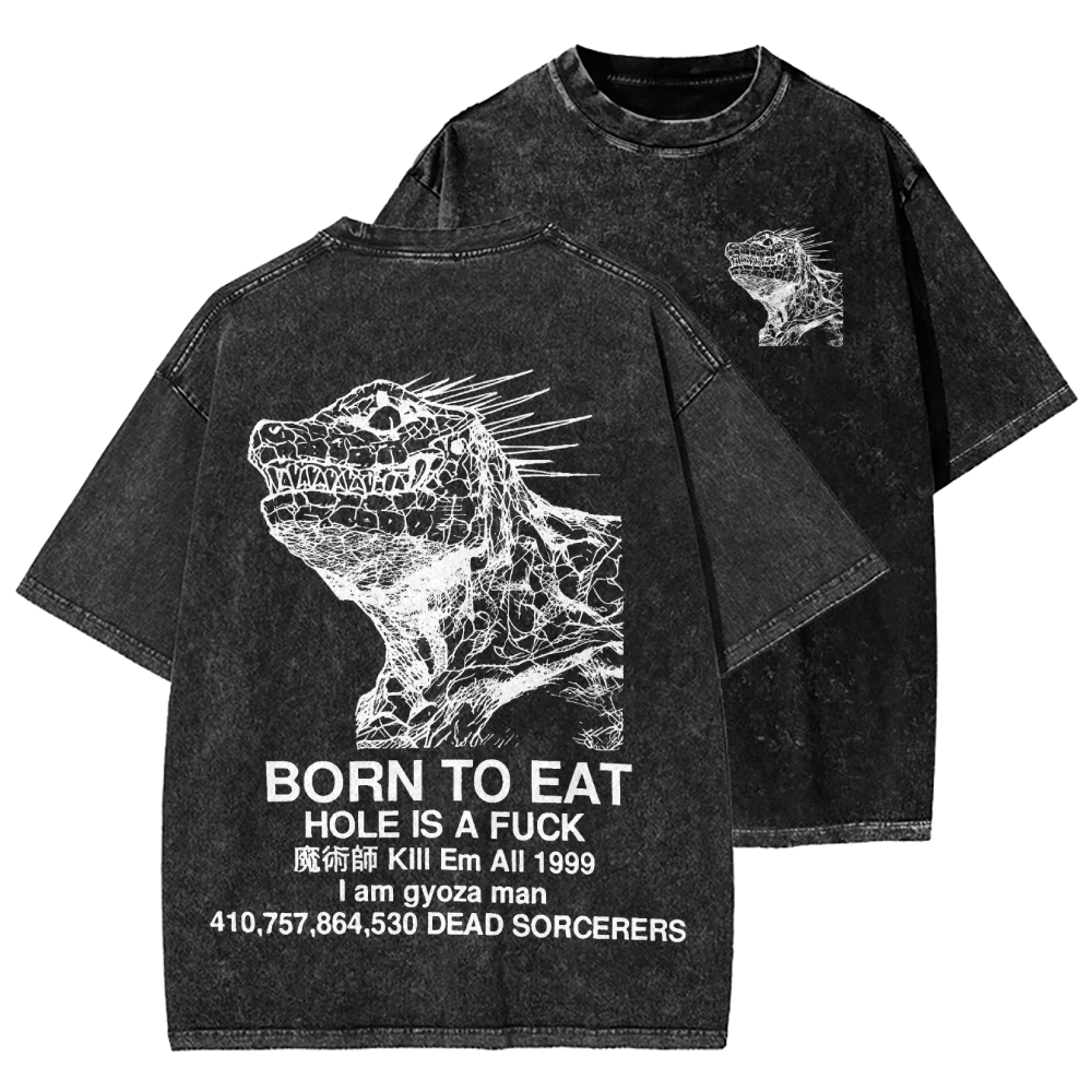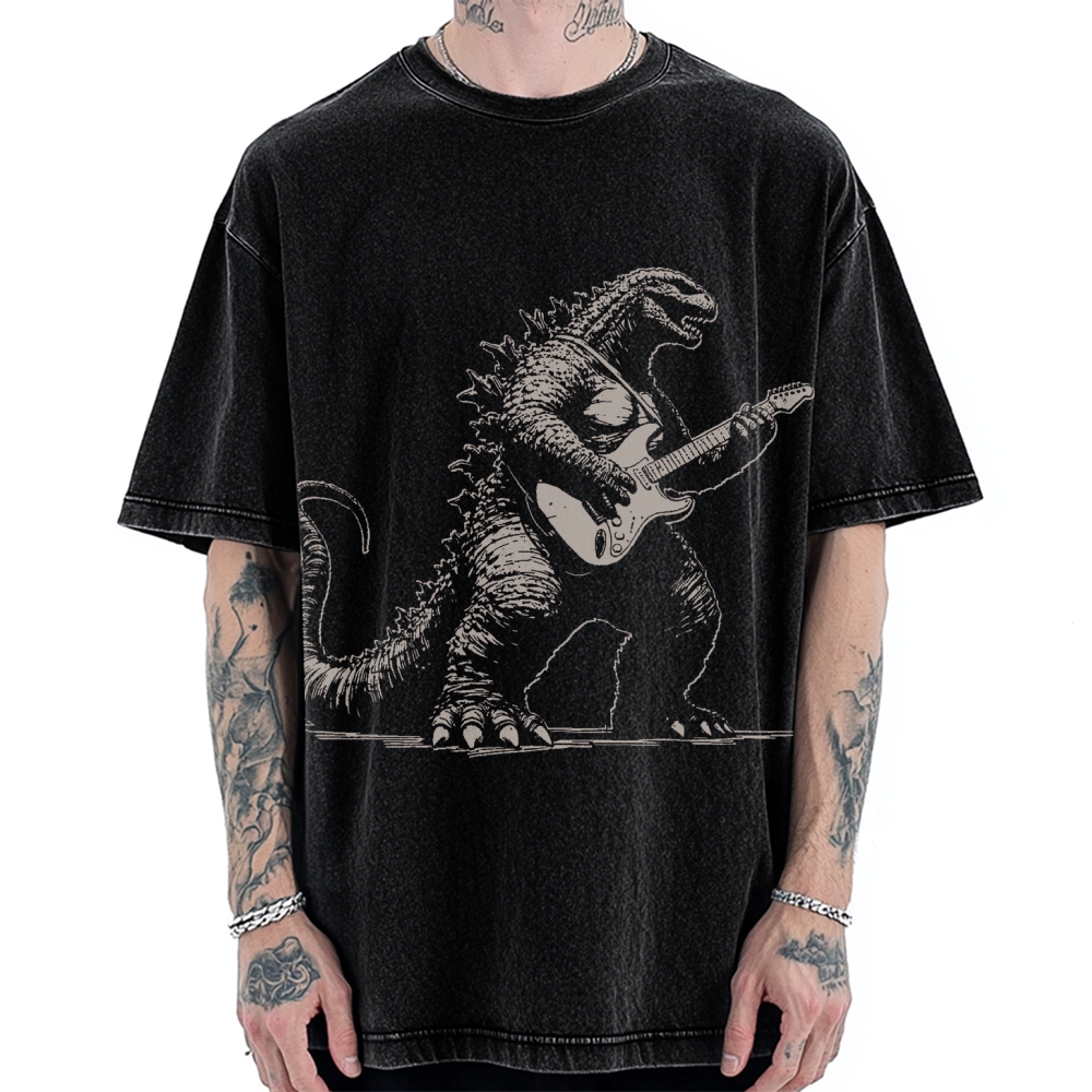 Monstrous Godzilla Playing Guitar Vintage Washed T-shirt