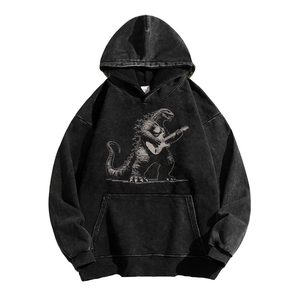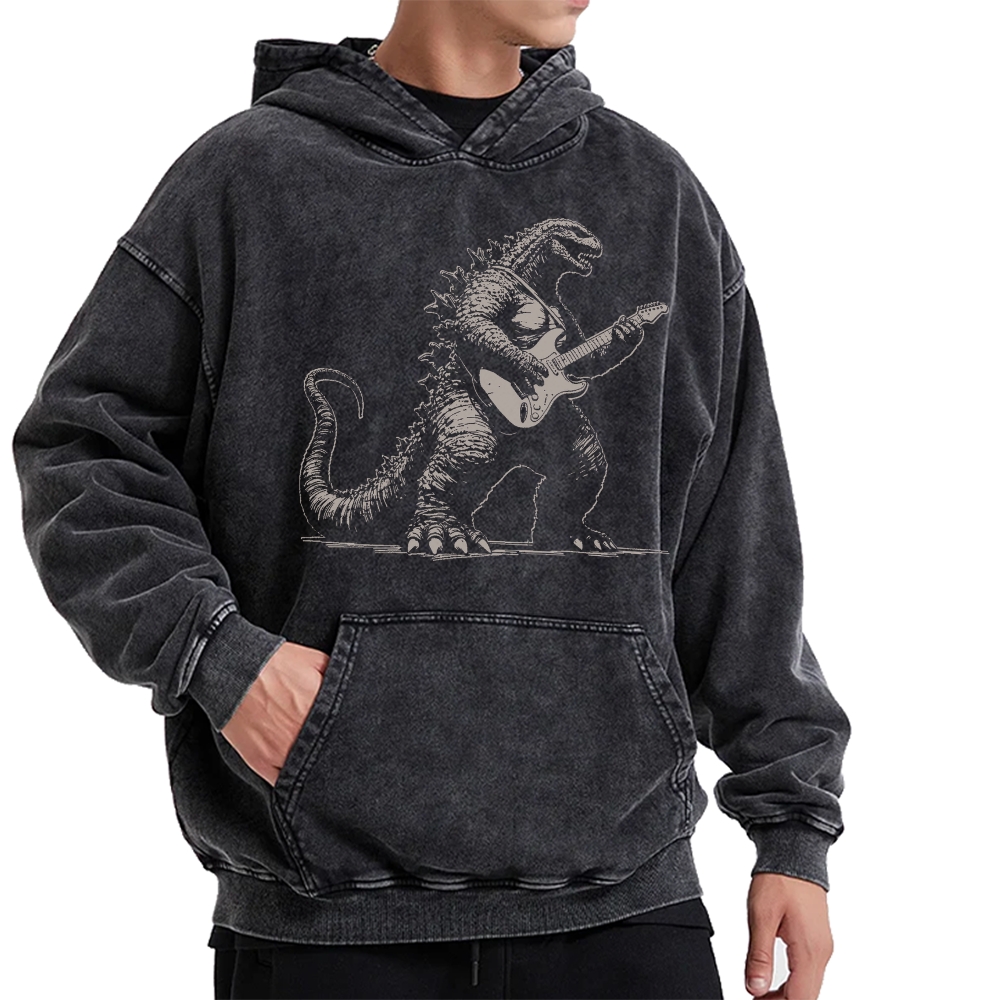 Monstrous Godzilla Playing Guitar Vintage Washed Hoodie