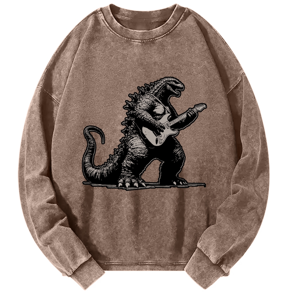Monstrous Godzilla Playing Guitar Vintage Washed Sweatshirts