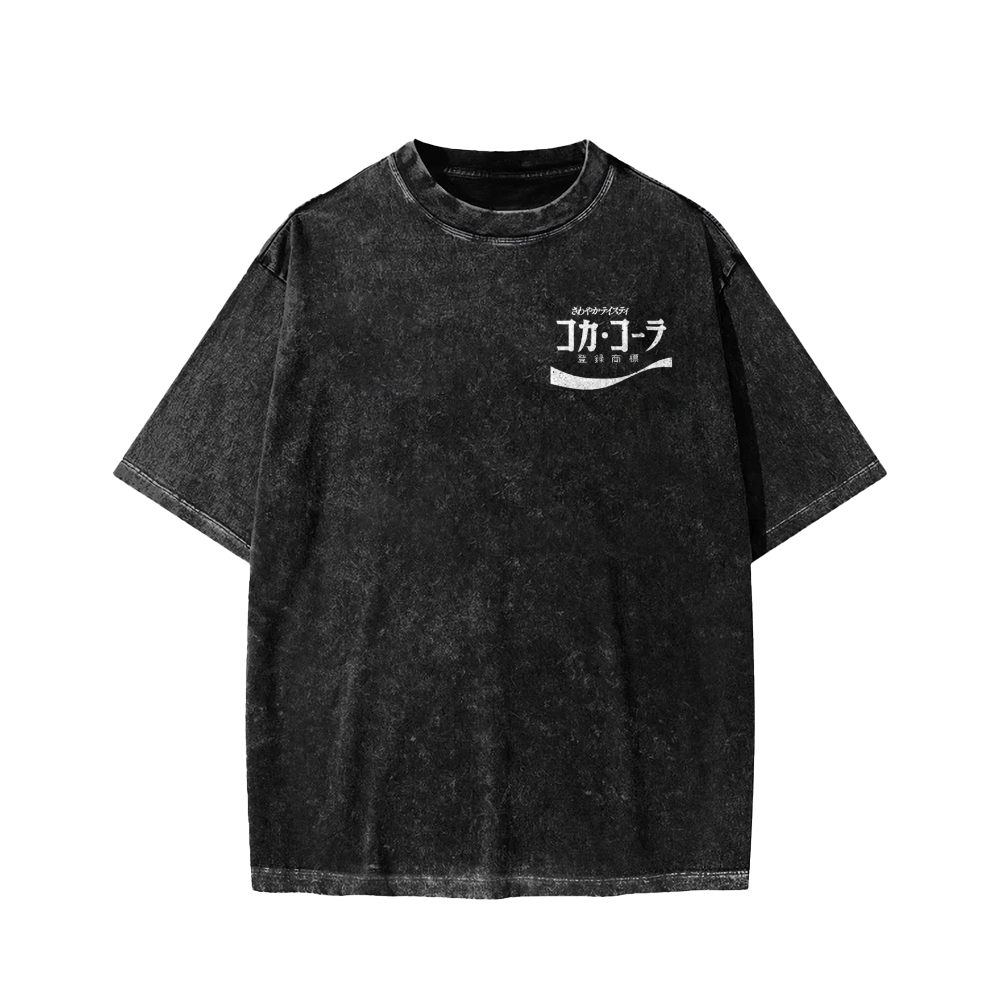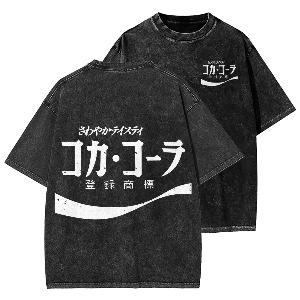 Retro Coke Cola Japanese Front And Back Printing Washed T-shirt