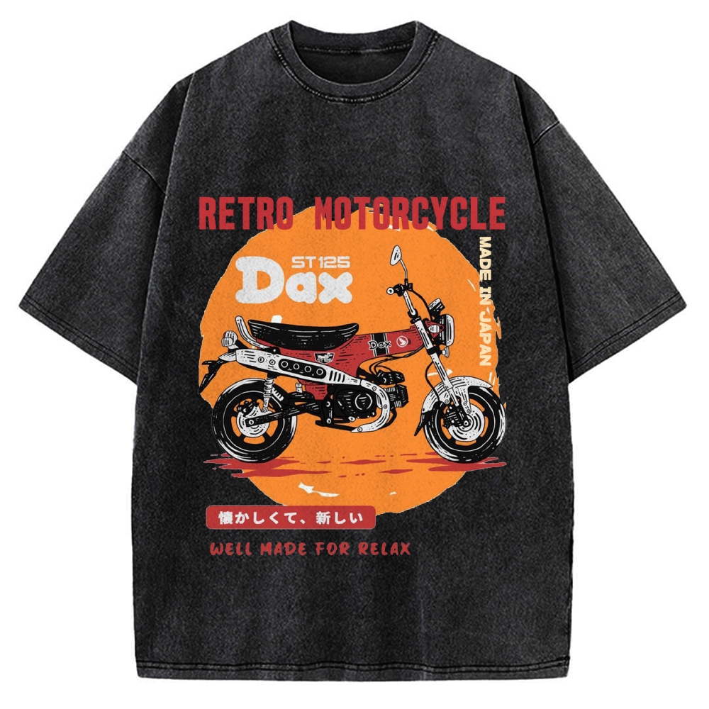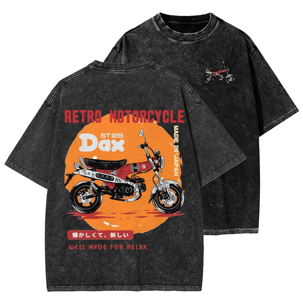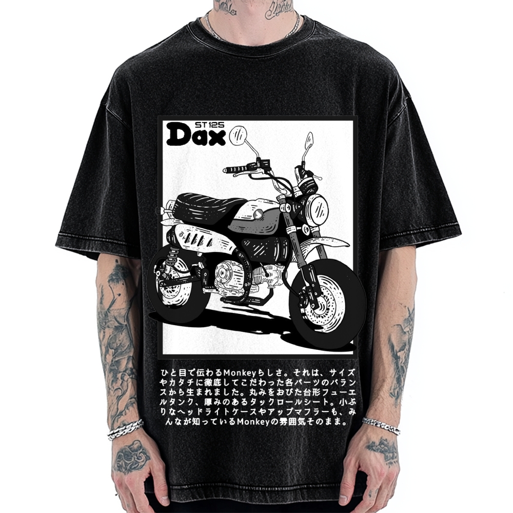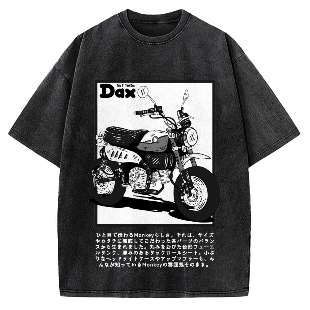 Japan Retro Motorcycle Dax 125 Front And Back Printing Washed T-shirt