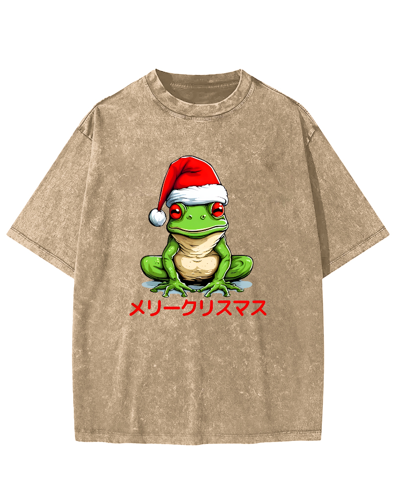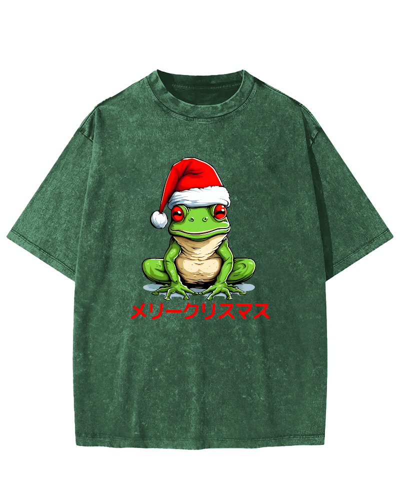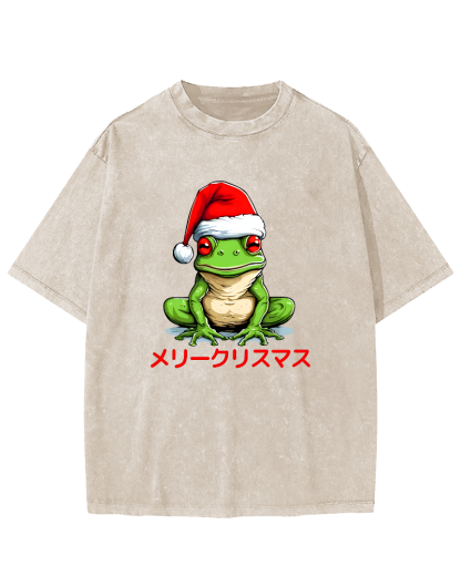 Merry Christmas, Japanese Frog Vintage Washed T-shirt