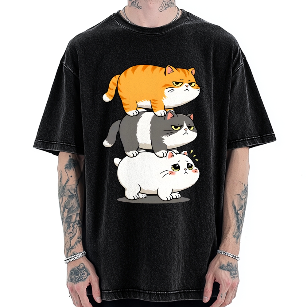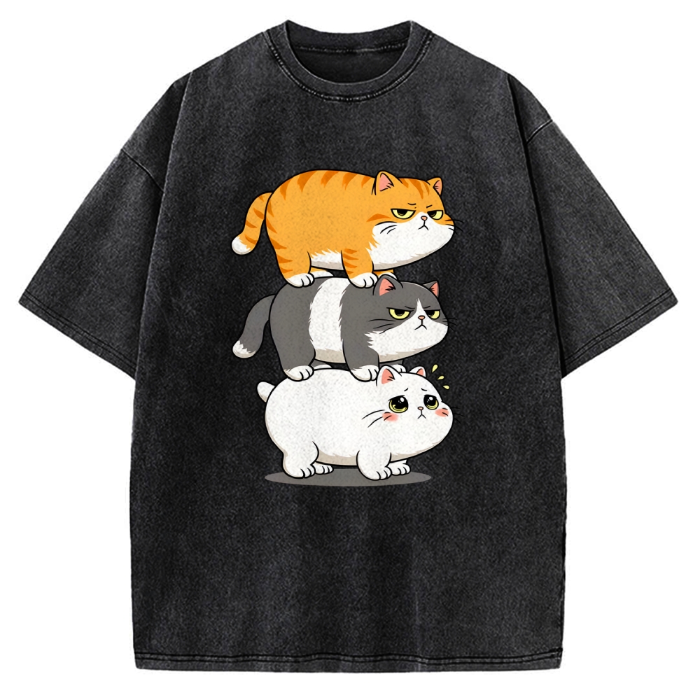 Cute Cat Art Paintings Vintage Washed T-shirt