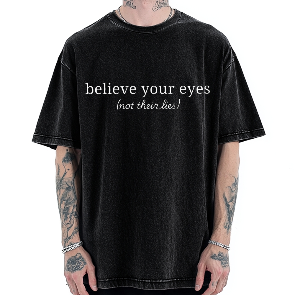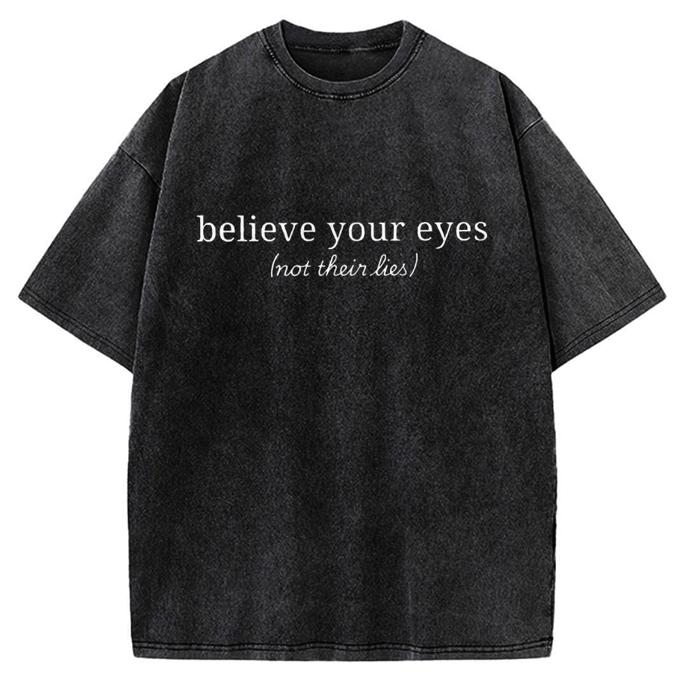 Believe Your Eyes, Not Their Lies Subtle Saying Vintage Washed T-shirt