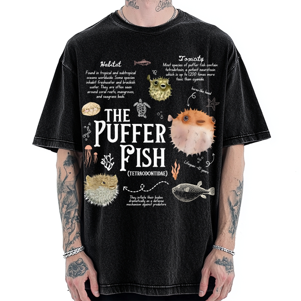 Japanese Puffer Fish Anatomy Vintage Washed T-shirt