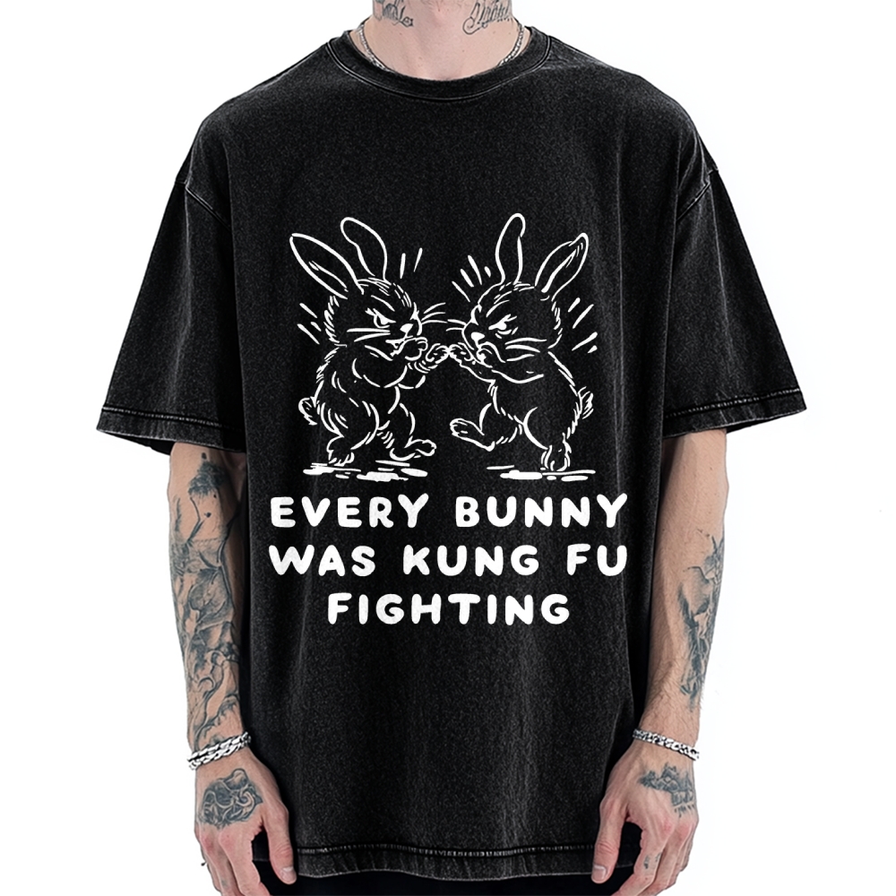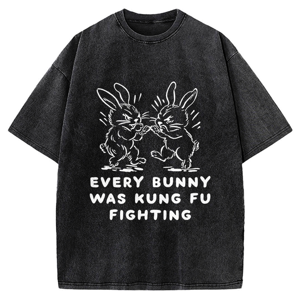 Every Bunny Was Kung Fu Fighting Rabbit Vintage Washed T-shirt