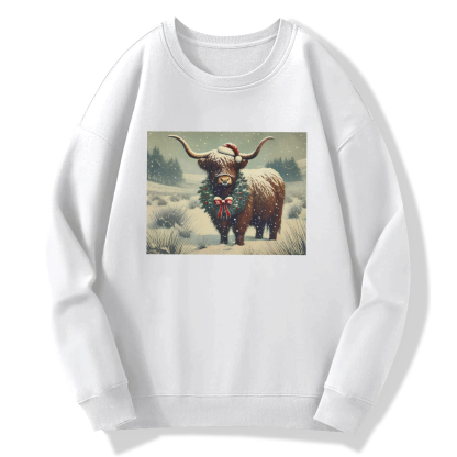 Christmas Highland Cattle Cotton Pullover Sweatshirt