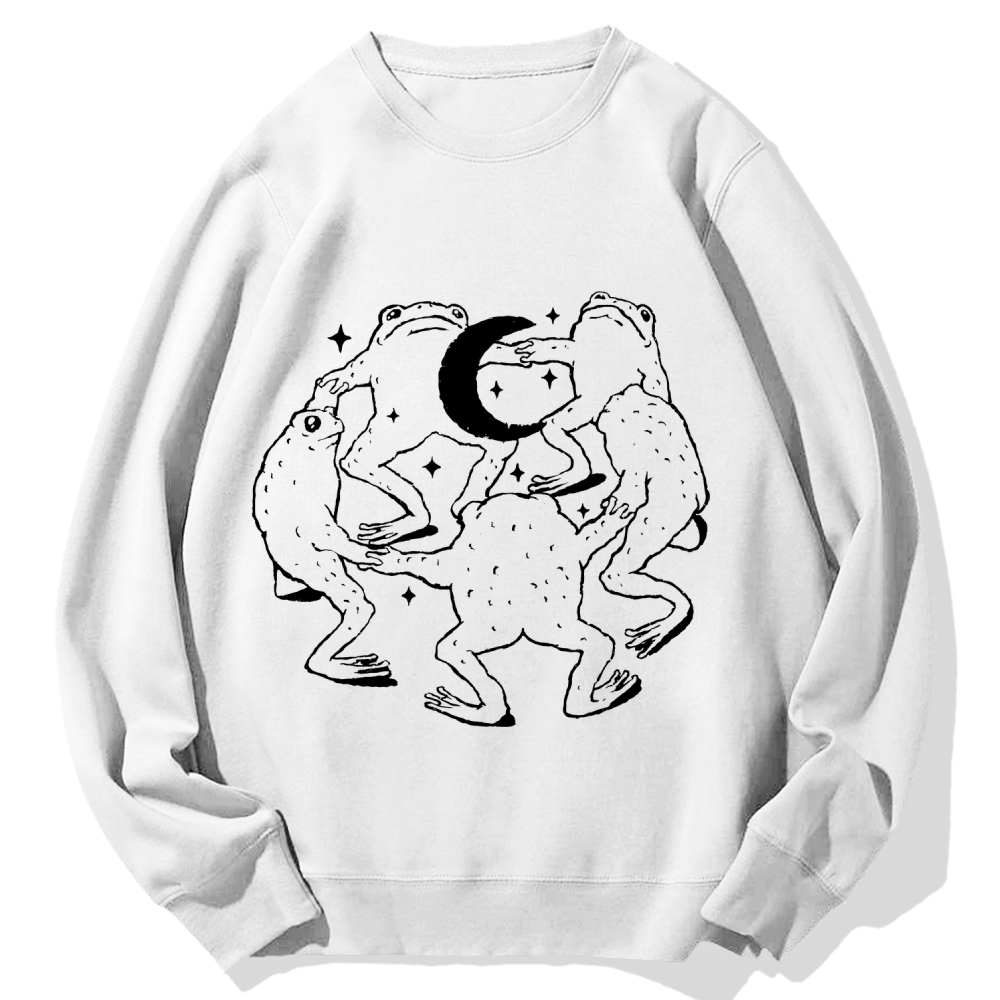 Frogs dancing around a crescent moon Cotton Sweatshirt