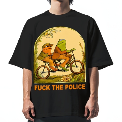 Fxxk The Police Funny Frogs Cotton casual T-shirt