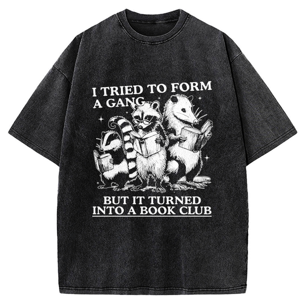 I Tried To Form A Gang But It Turned Into A Book Club Raccoon Opossum Vintage Washed T-shirt
