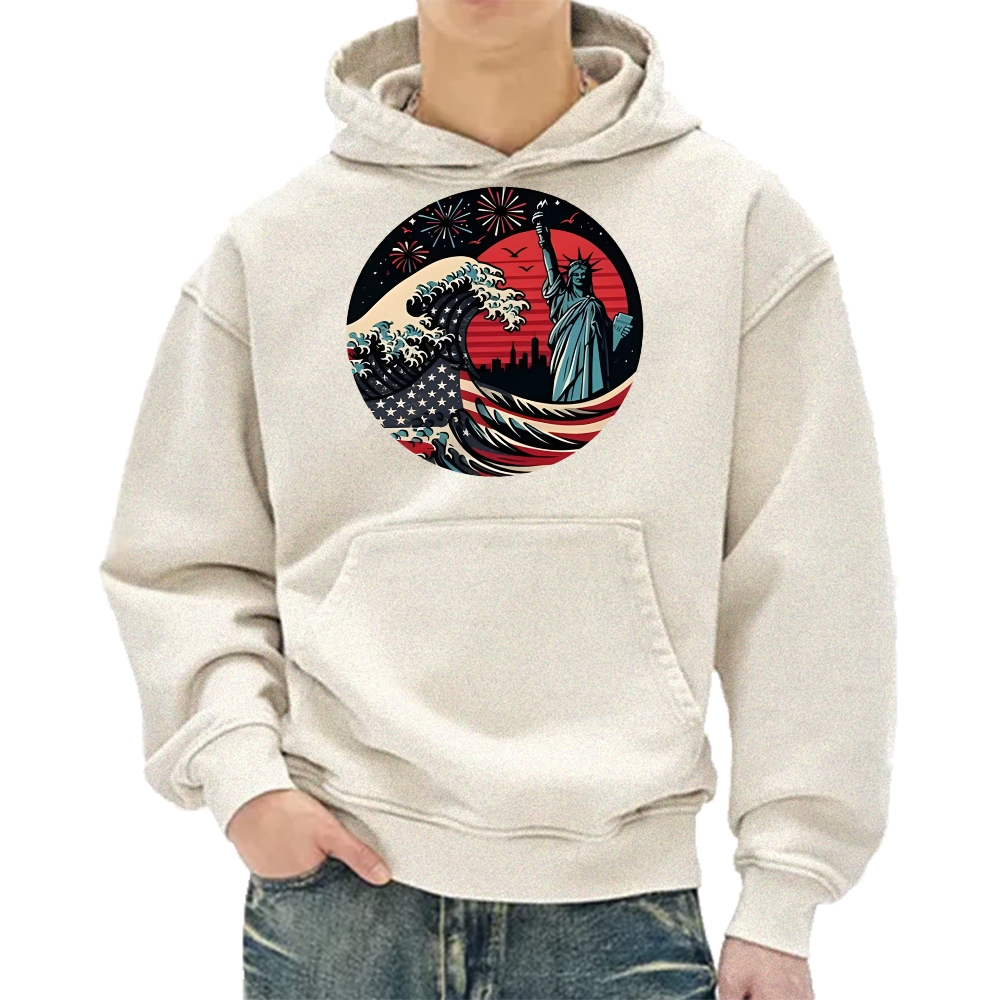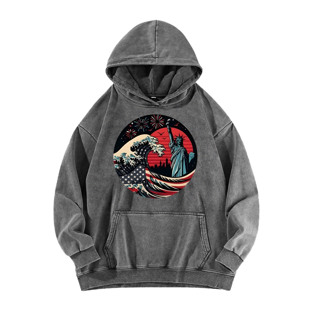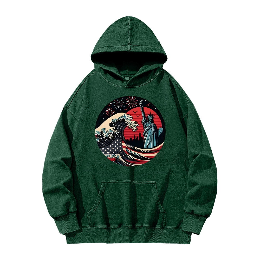 Japanese Kawagana Wave statue of liberty Vintage Washed Hoodie