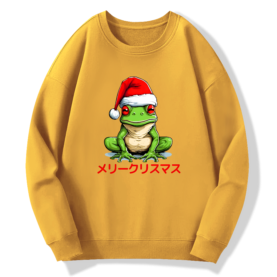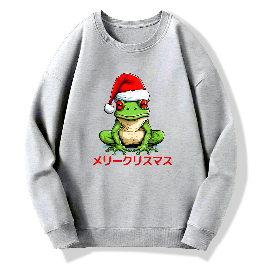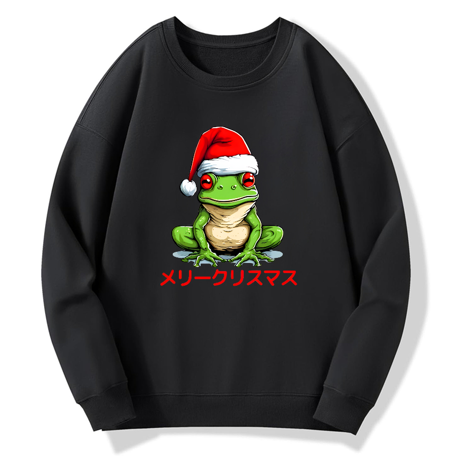 Merry Christmas, Japanese Frog Cotton Pullover Sweatshirt
