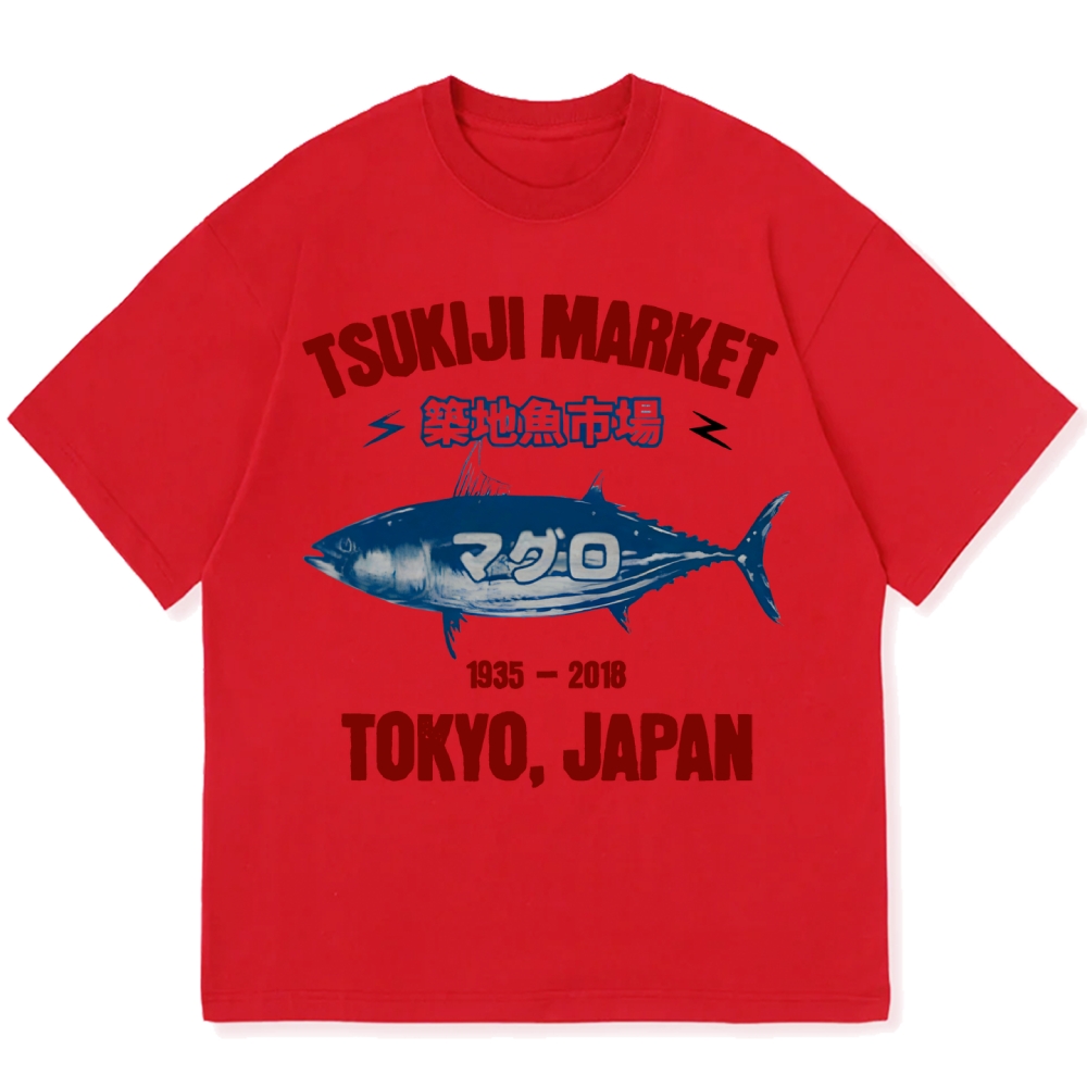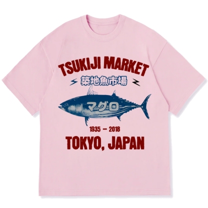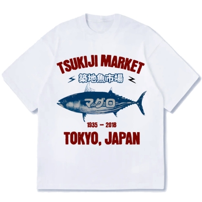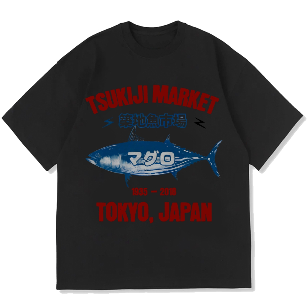 Tsukiji Market Tuna Fish 1935-2018 Retro Tokyo Cotton casual T-shirt