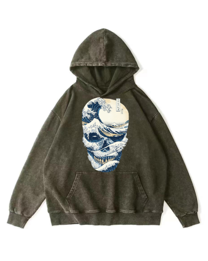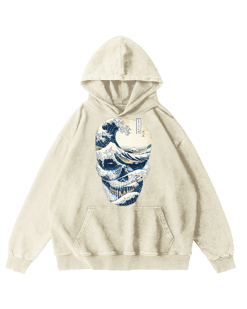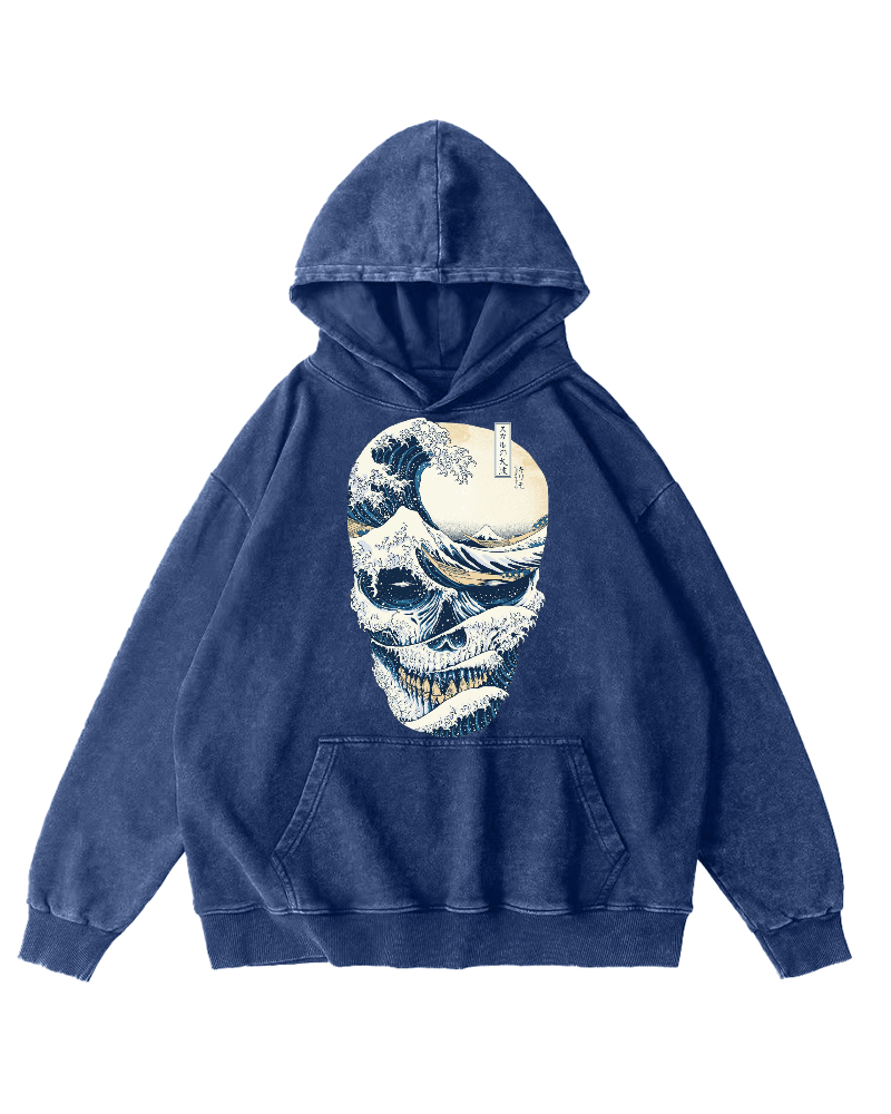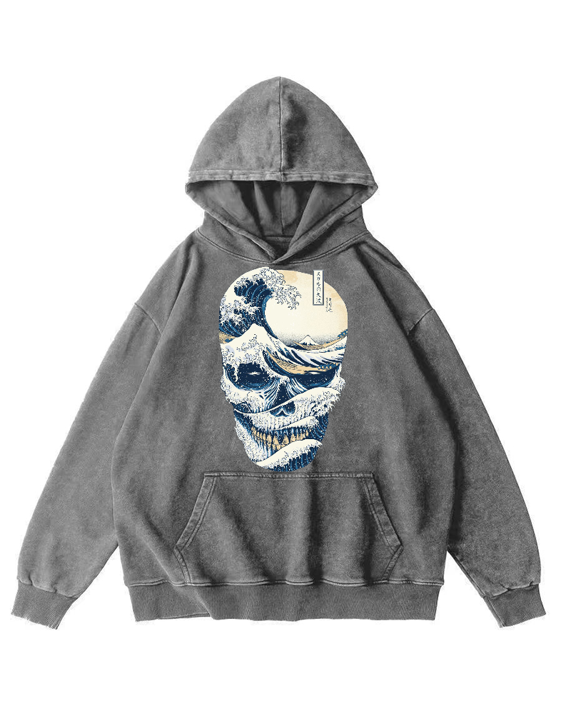 Wave Skeleton Vintage Washed Hoodie