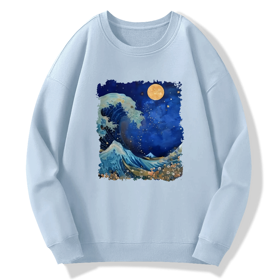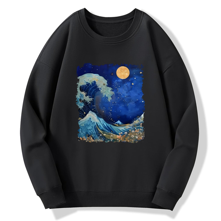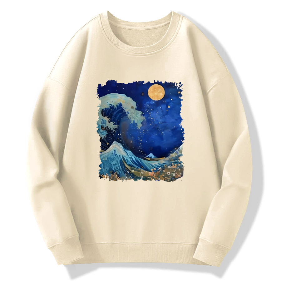 Waves in the Night, Japanese Art Cotton Pullover Sweatshirt