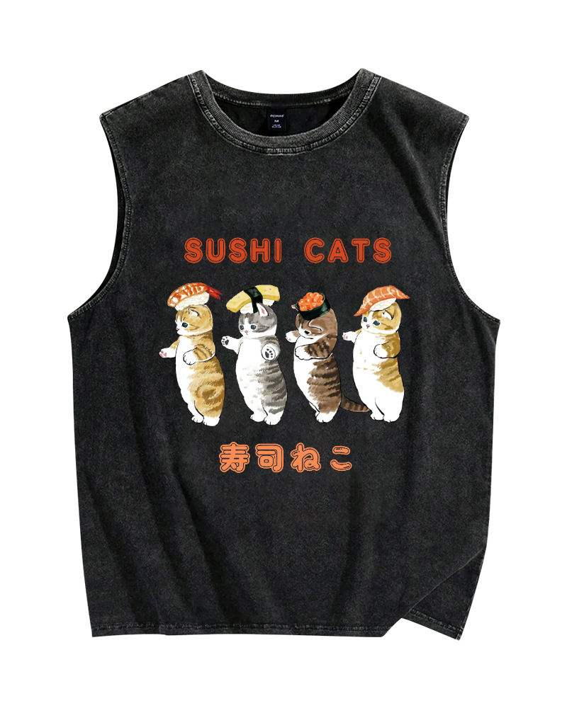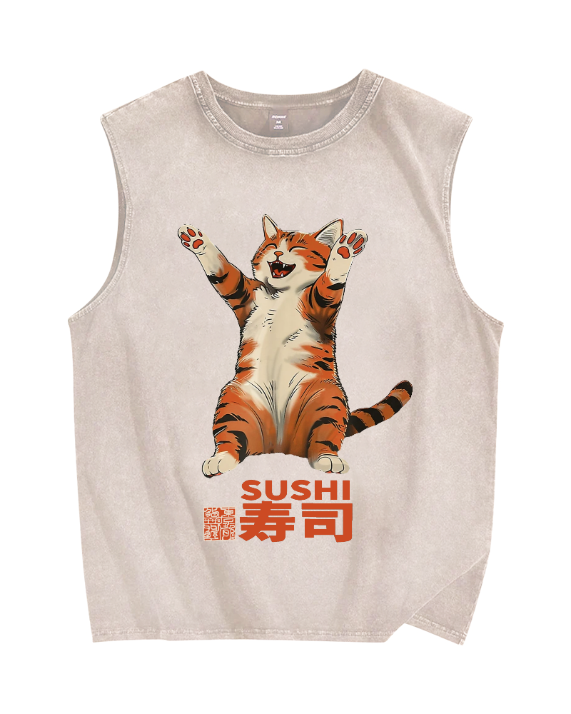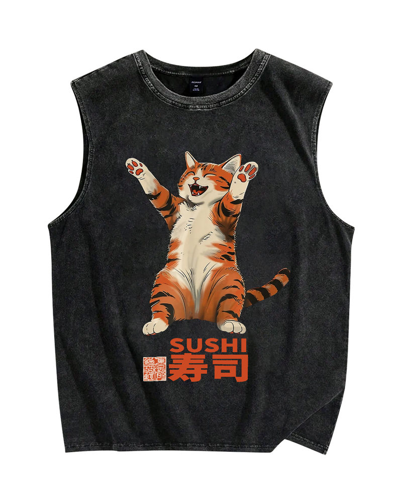 Cat Sushi Vintage Distressed Washed Tank Top