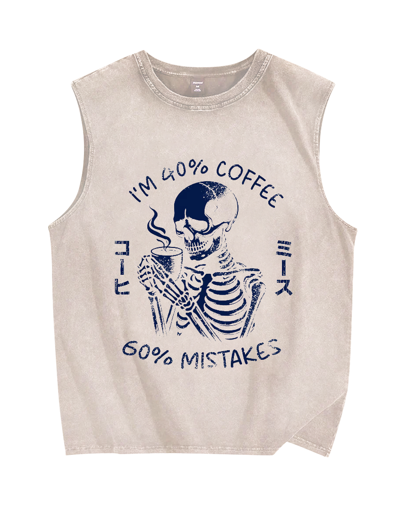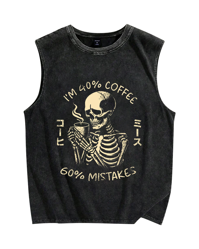 40% Coffee & 60% Mistakes Skull Vintage Distressed Washed Tank Top