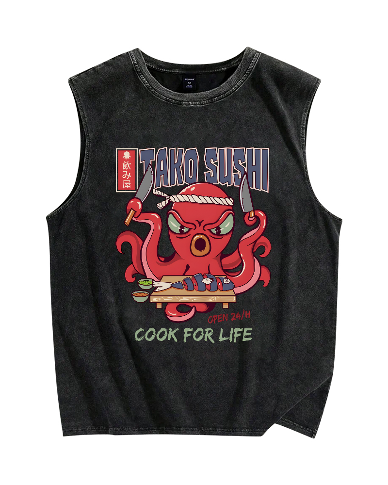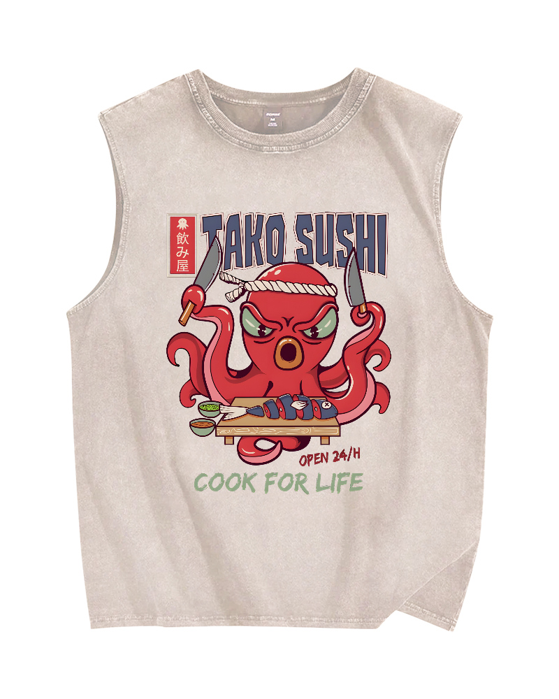 Tako Sushi Octopus Vintage Distressed Washed Tank Top