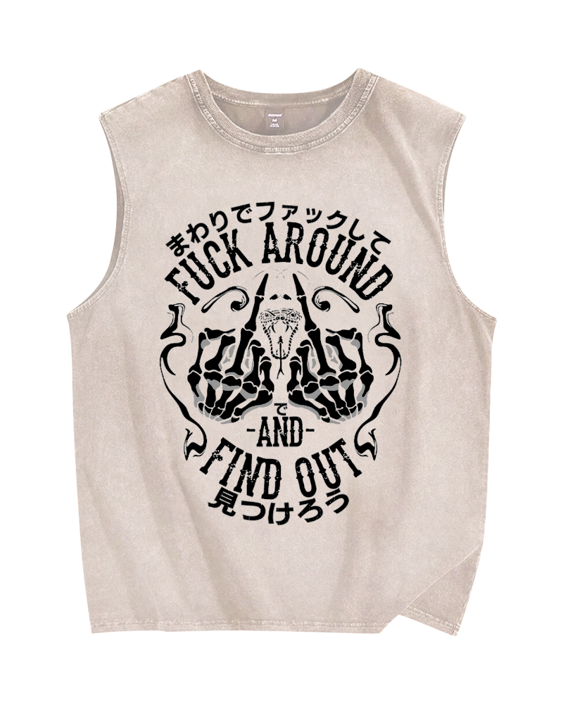 Fxxk Around And Find Out Skeleton Vintage Distressed Washed Tank Top