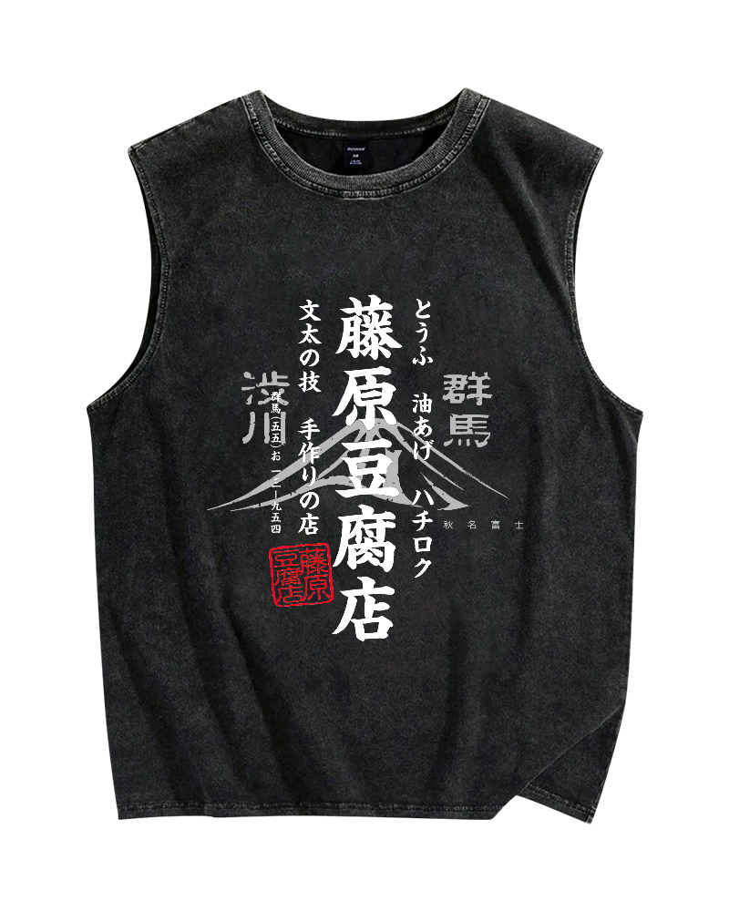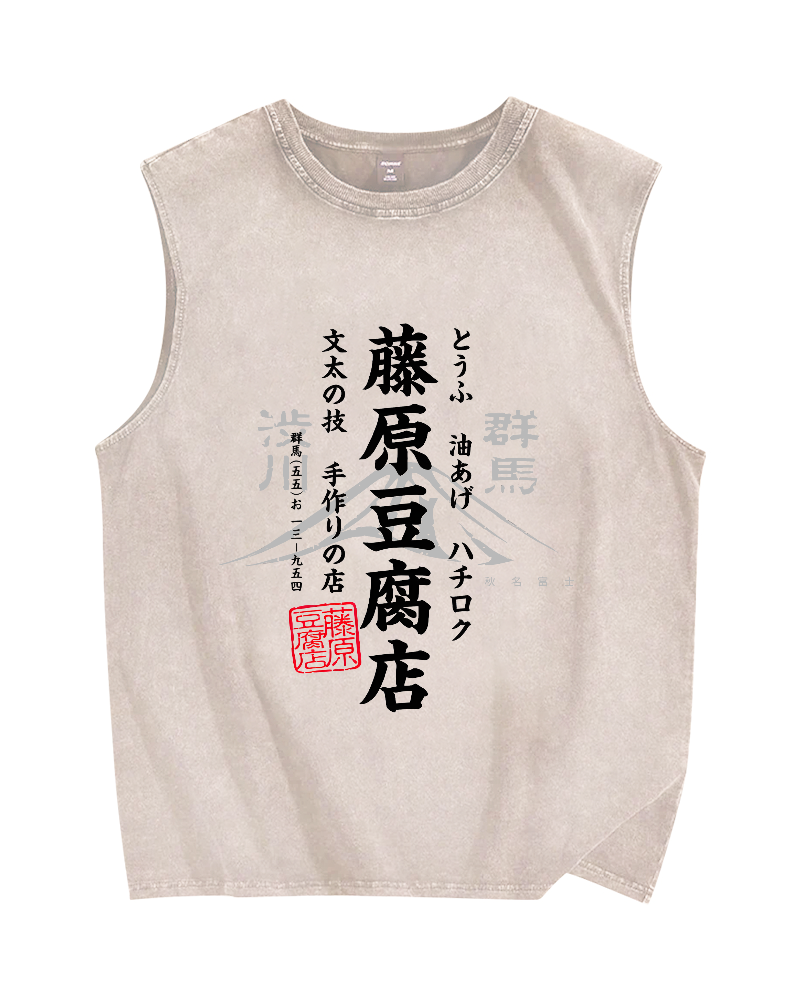 Fujiwara Tofu Shop Japanese Style Poster Vintage Distressed Washed Tank Top
