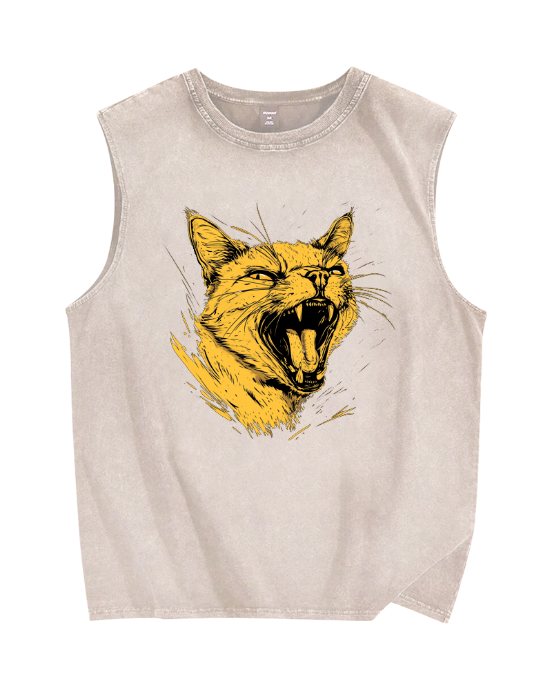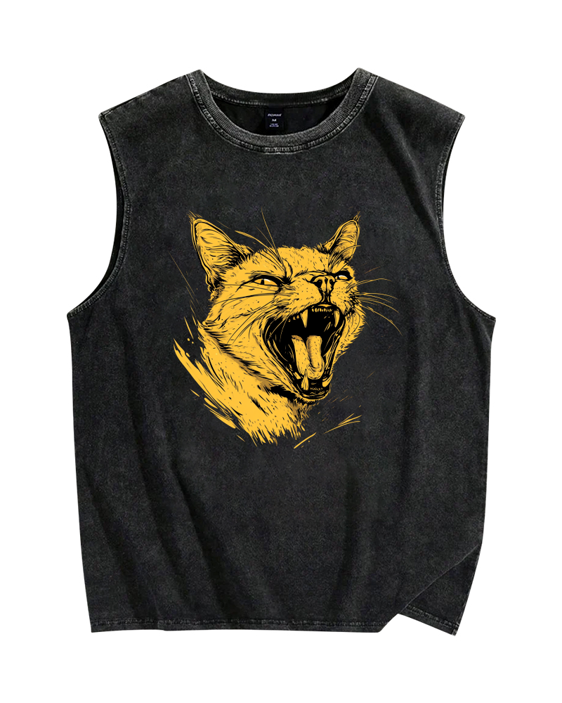 Furious Cat Vintage Distressed Washed Tank Top