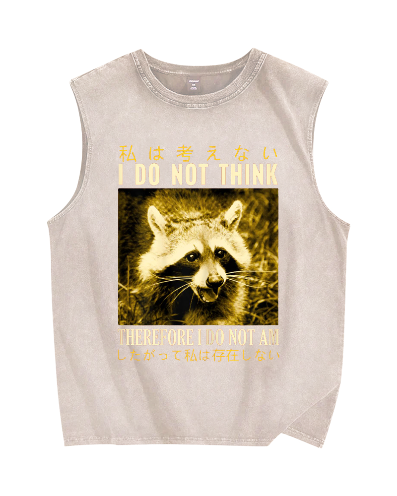 I don't think therefore i do not am Raccoon Vintage Distressed Washed Tank Top