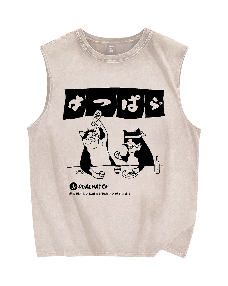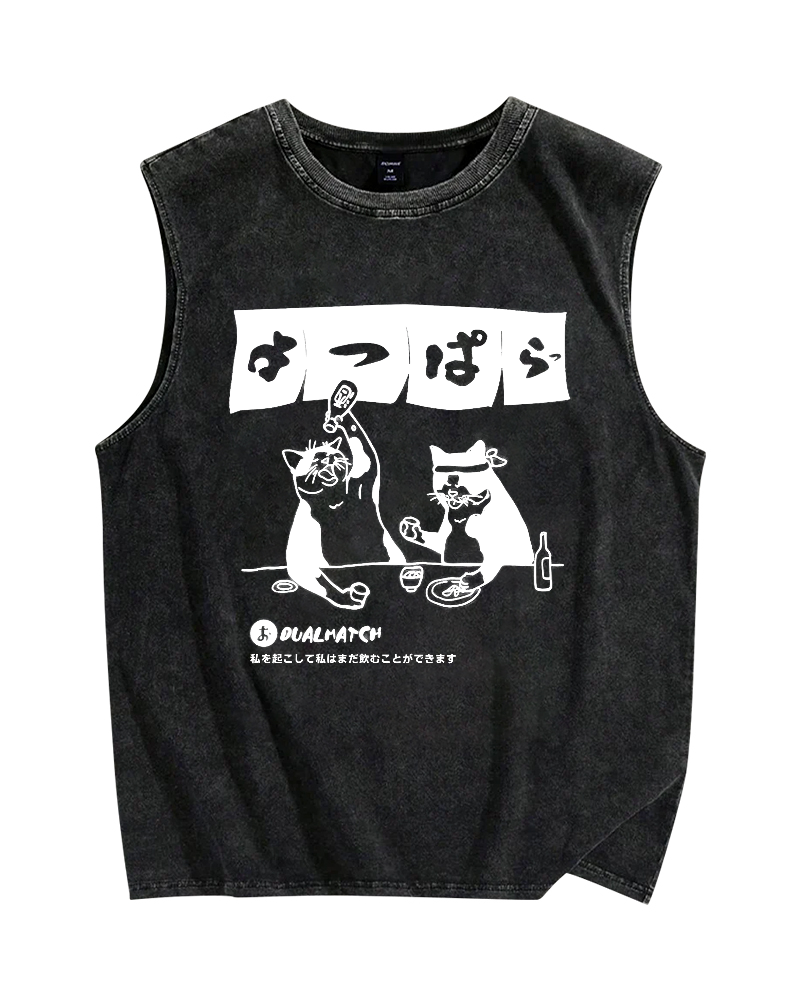 Wake me up I can still drink Cat Izakaya Vintage Distressed Washed Tank Top