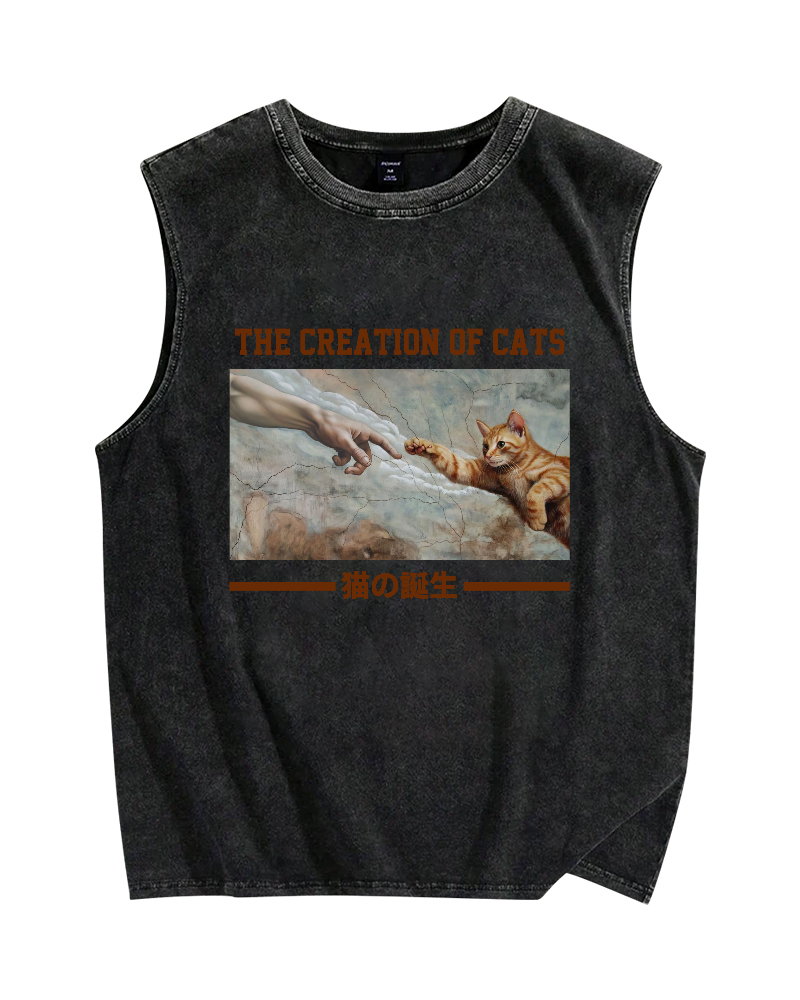 The creation of cats Vintage Distressed Washed Tank Top