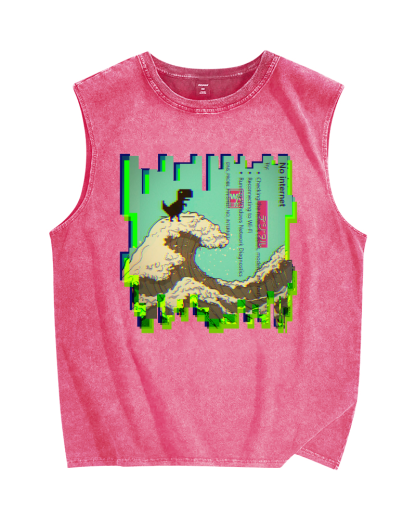 404 Error T-Rex riding the waves Vintage Distressed Washed Tank Top