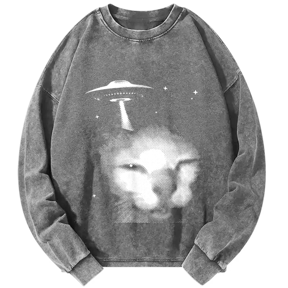 Alien Silly Cat Meme Vintage Washed Sweatshirts