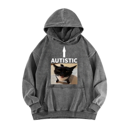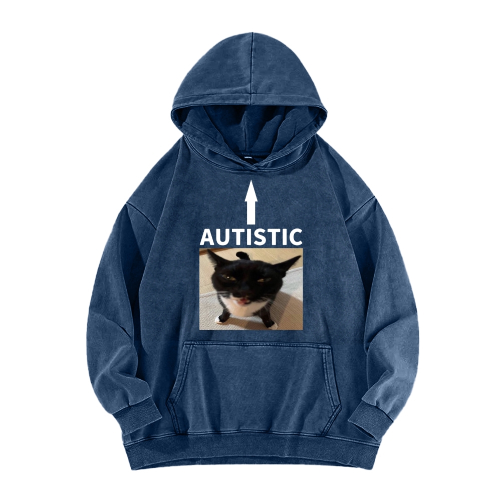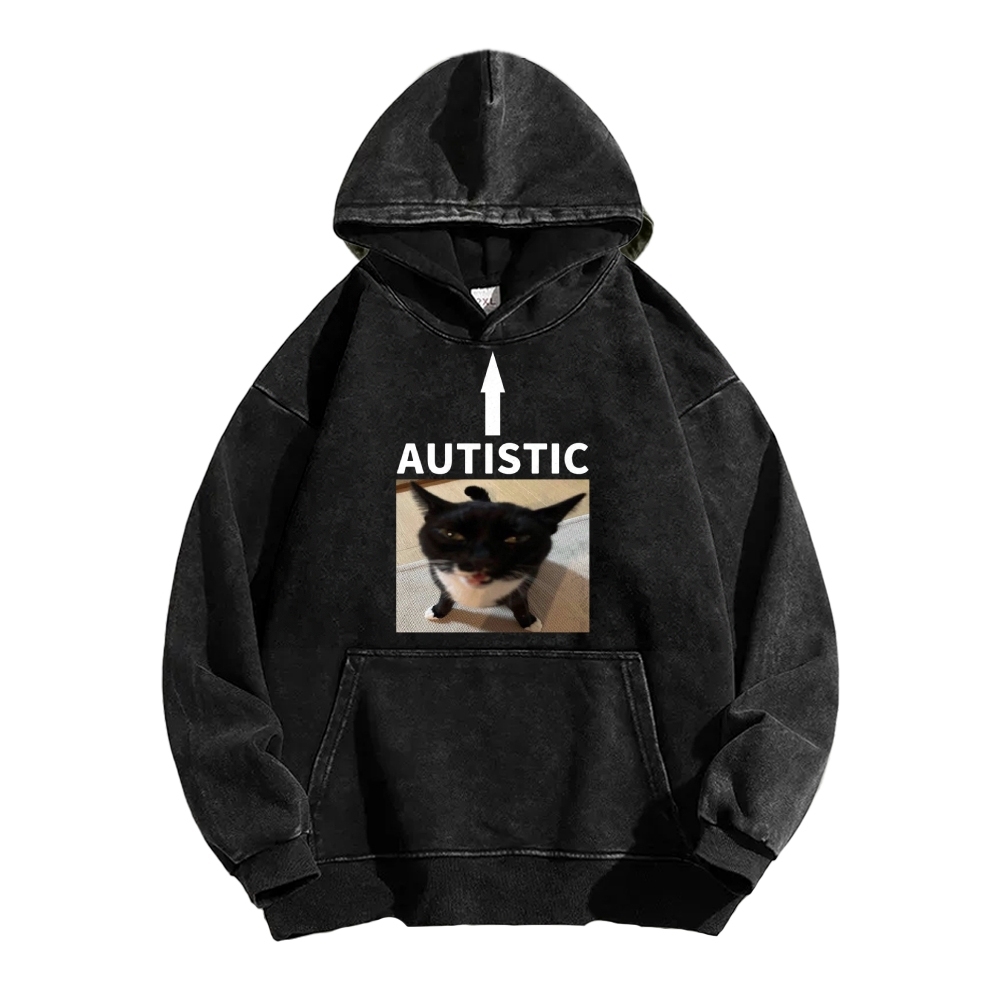 AUTISTIC Meme Cat Vintage Washed Hoodie
