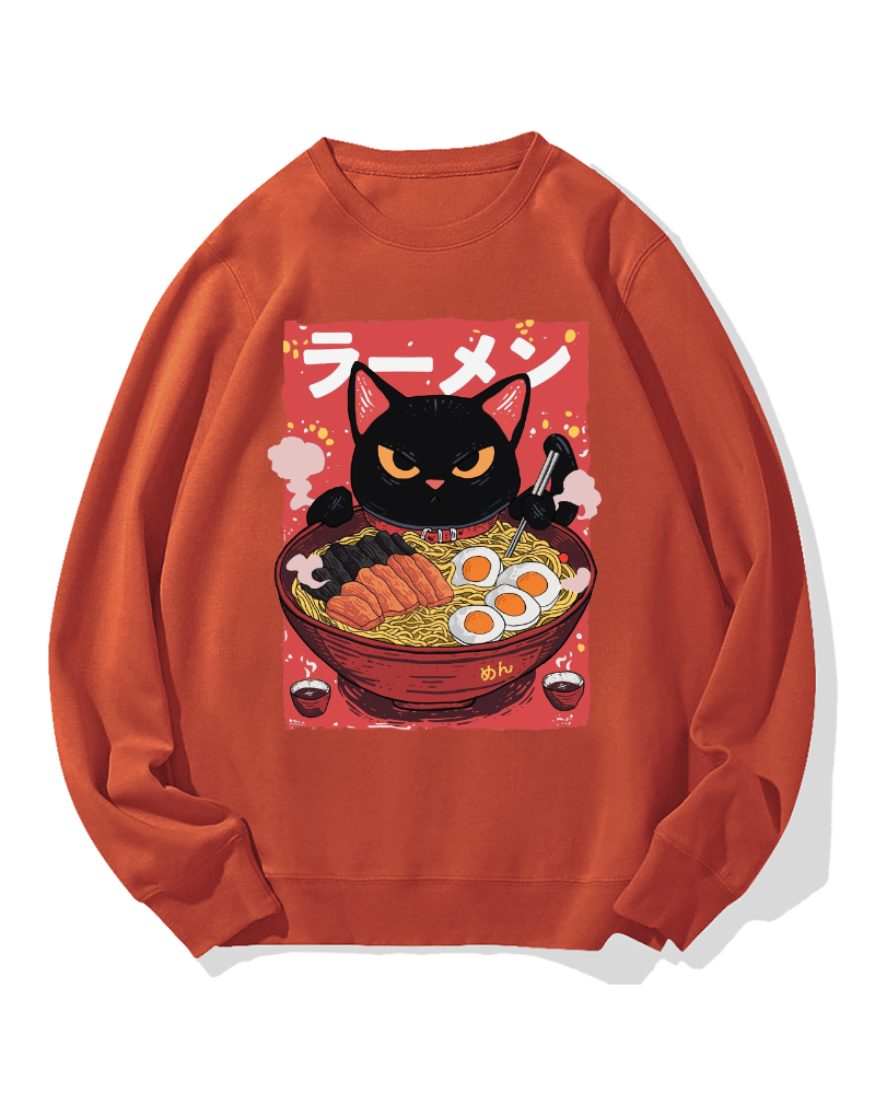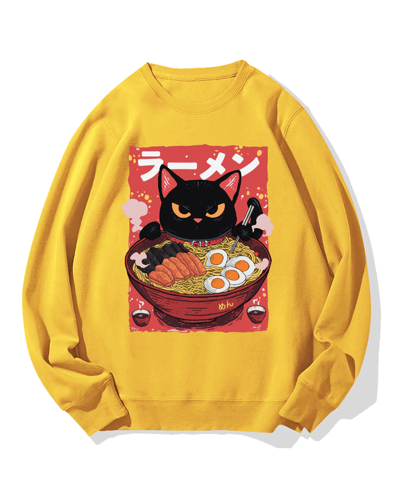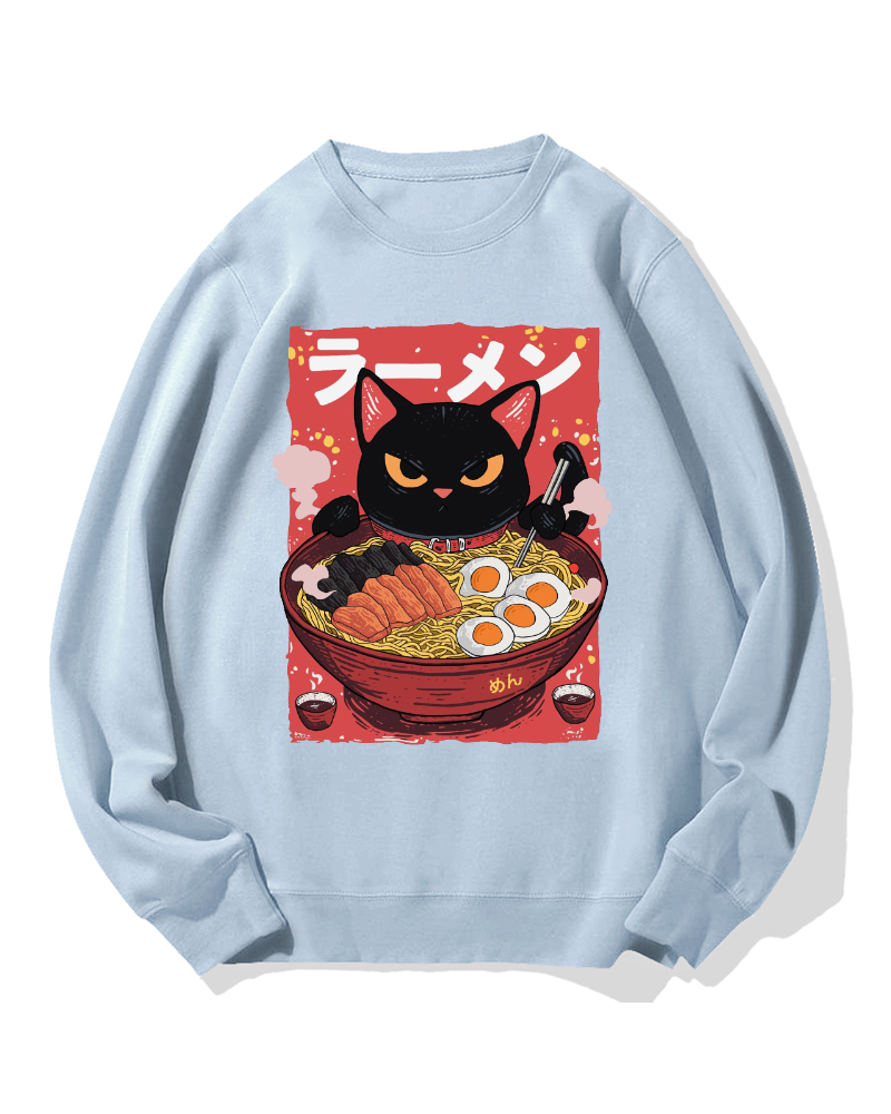 Cat eating ramen Cotton Sweatshirt