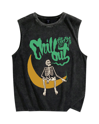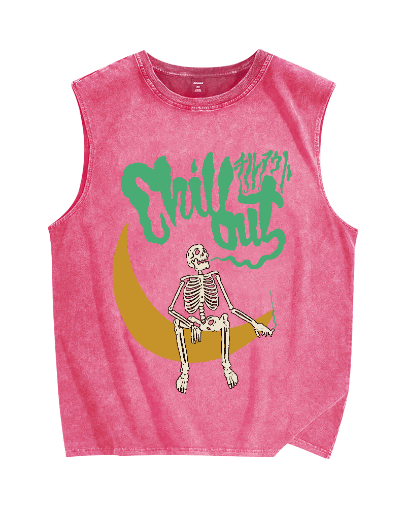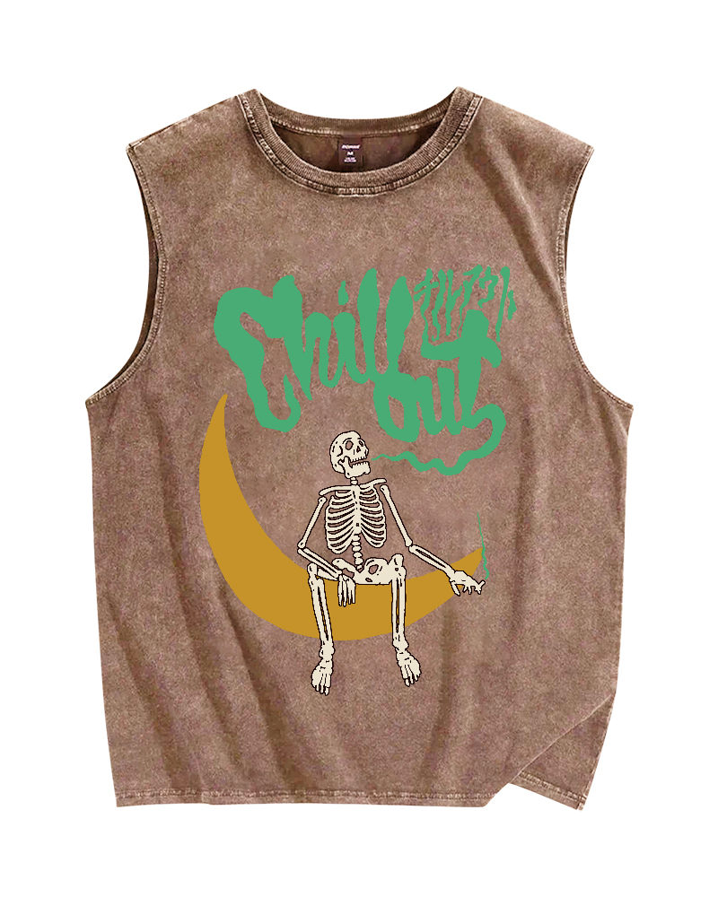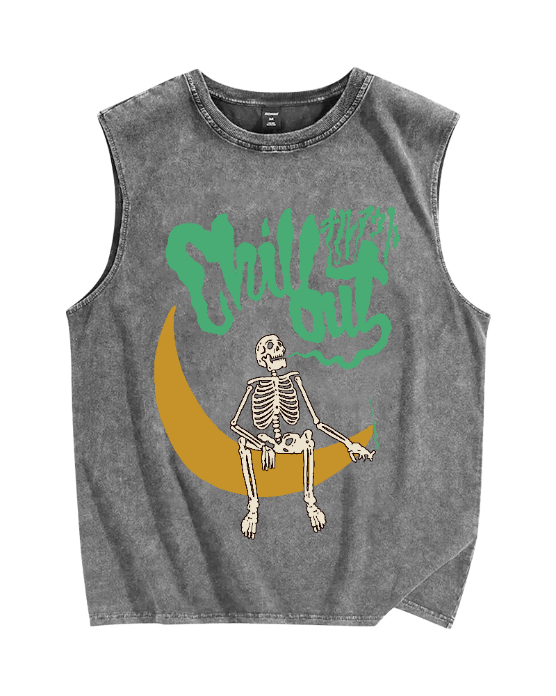 Chill out Skeleton Vintage Distressed Washed Tank Top