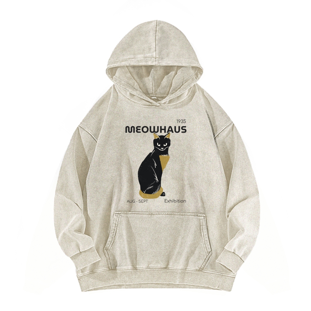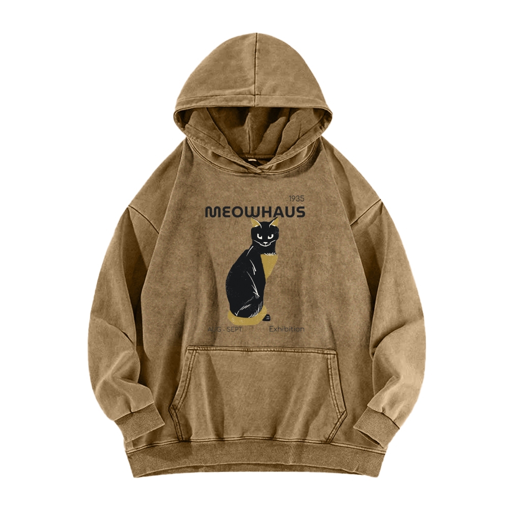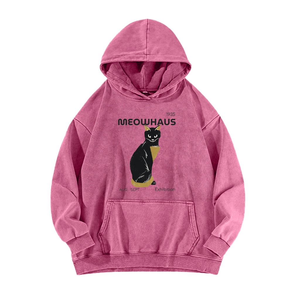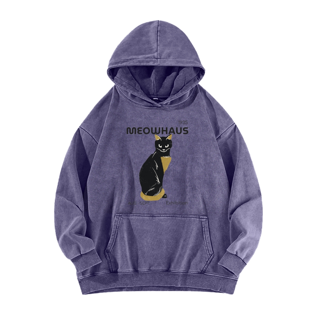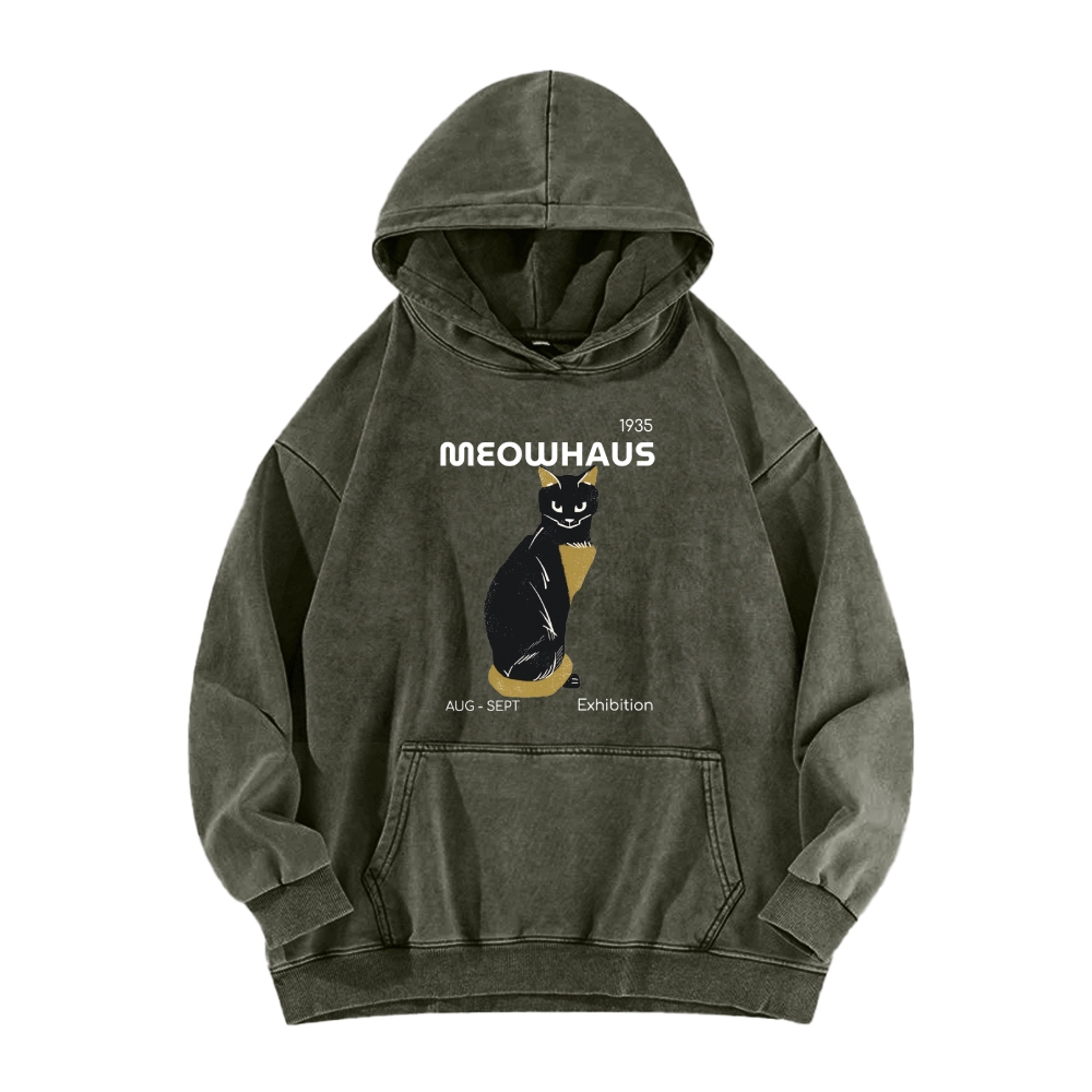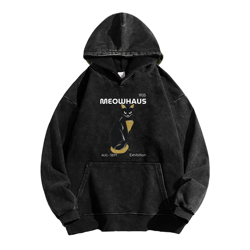 Funny Meowhaus Black Cat Vintage Washed Hoodie